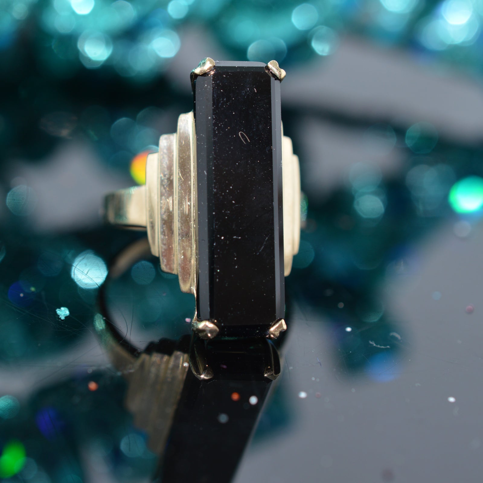 $395.00 USD10K Yellow Gold Elongated Emerald Cut Black Onyx Ring