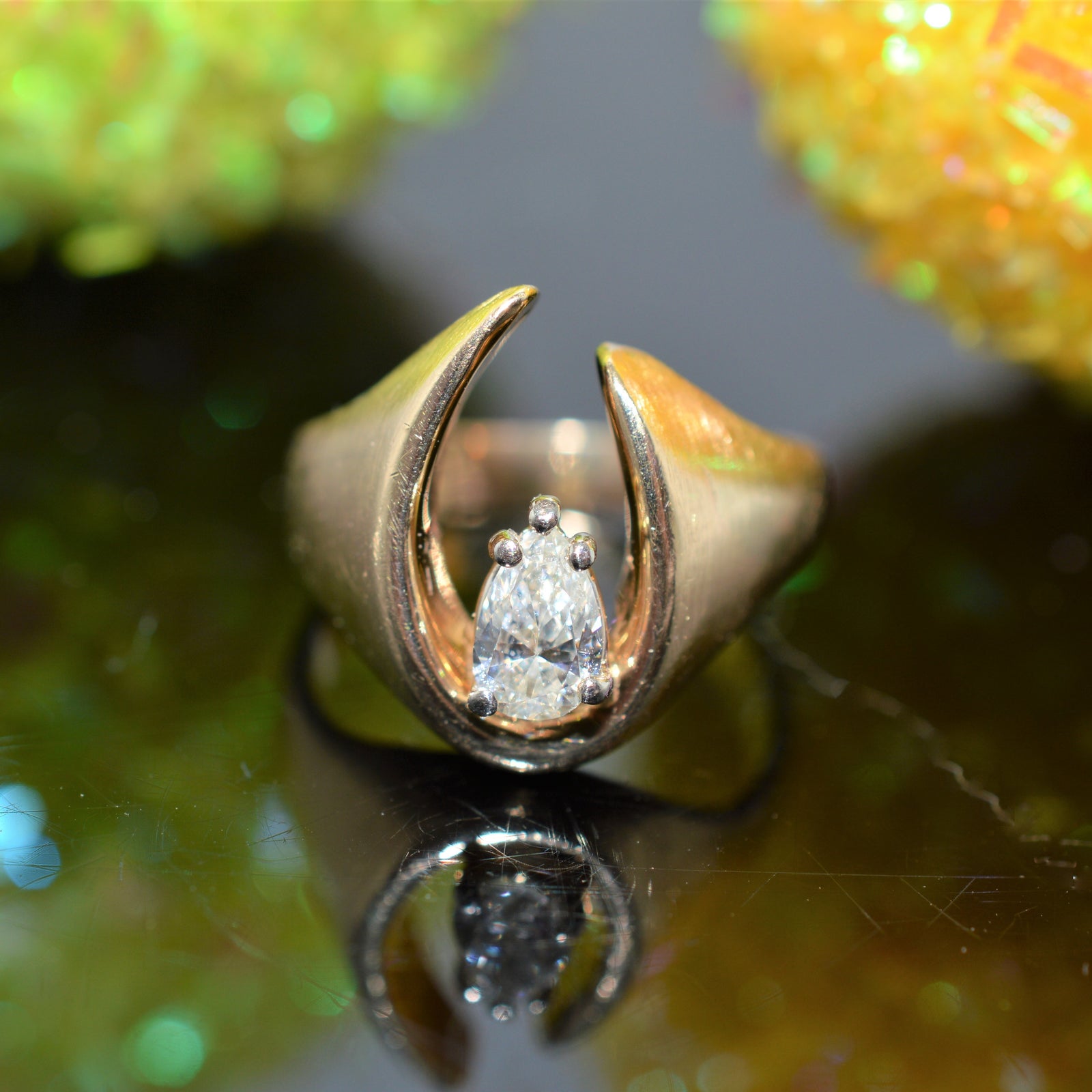 $1,650.00 USD14K Yellow Gold Free Form Pear Cut Diamond Ring