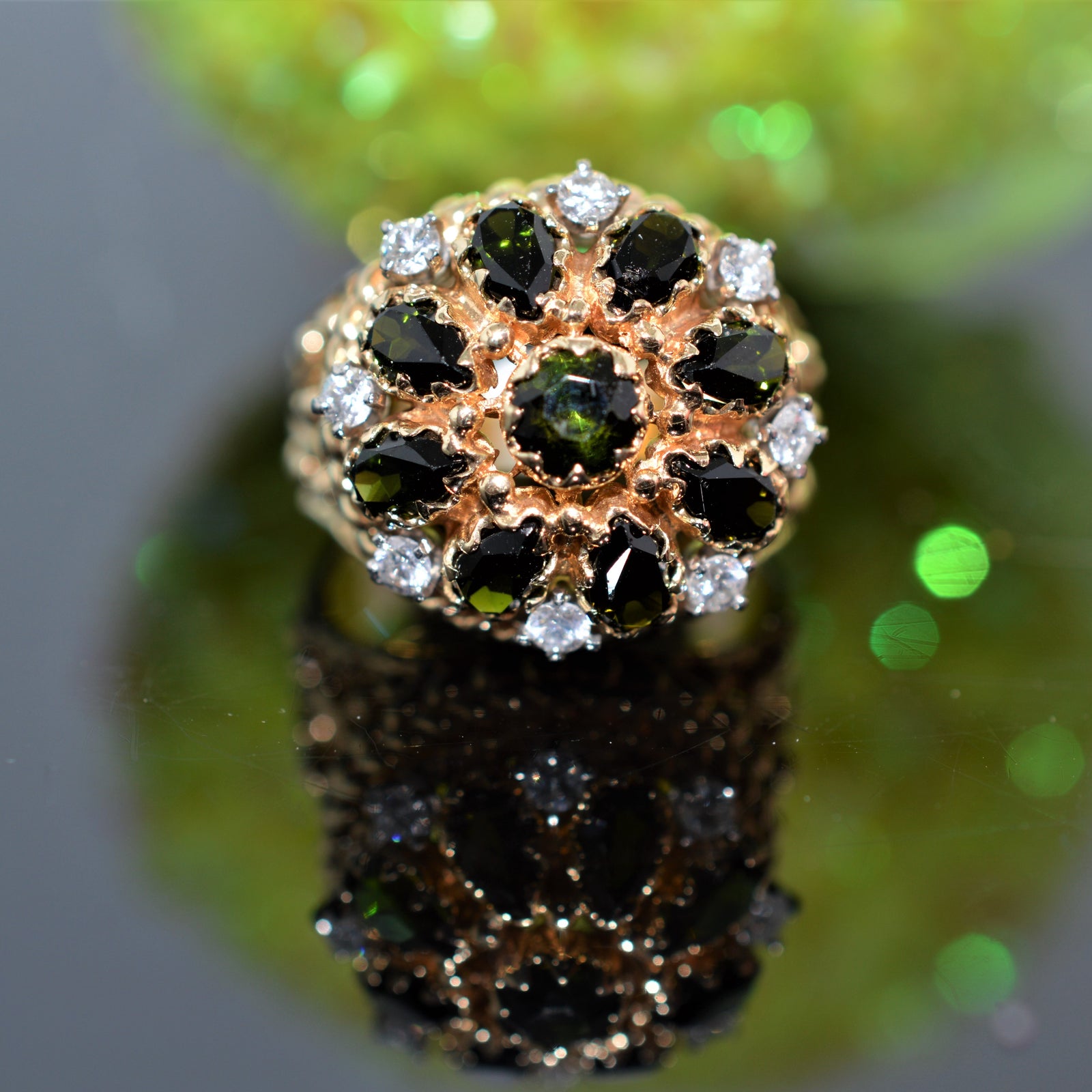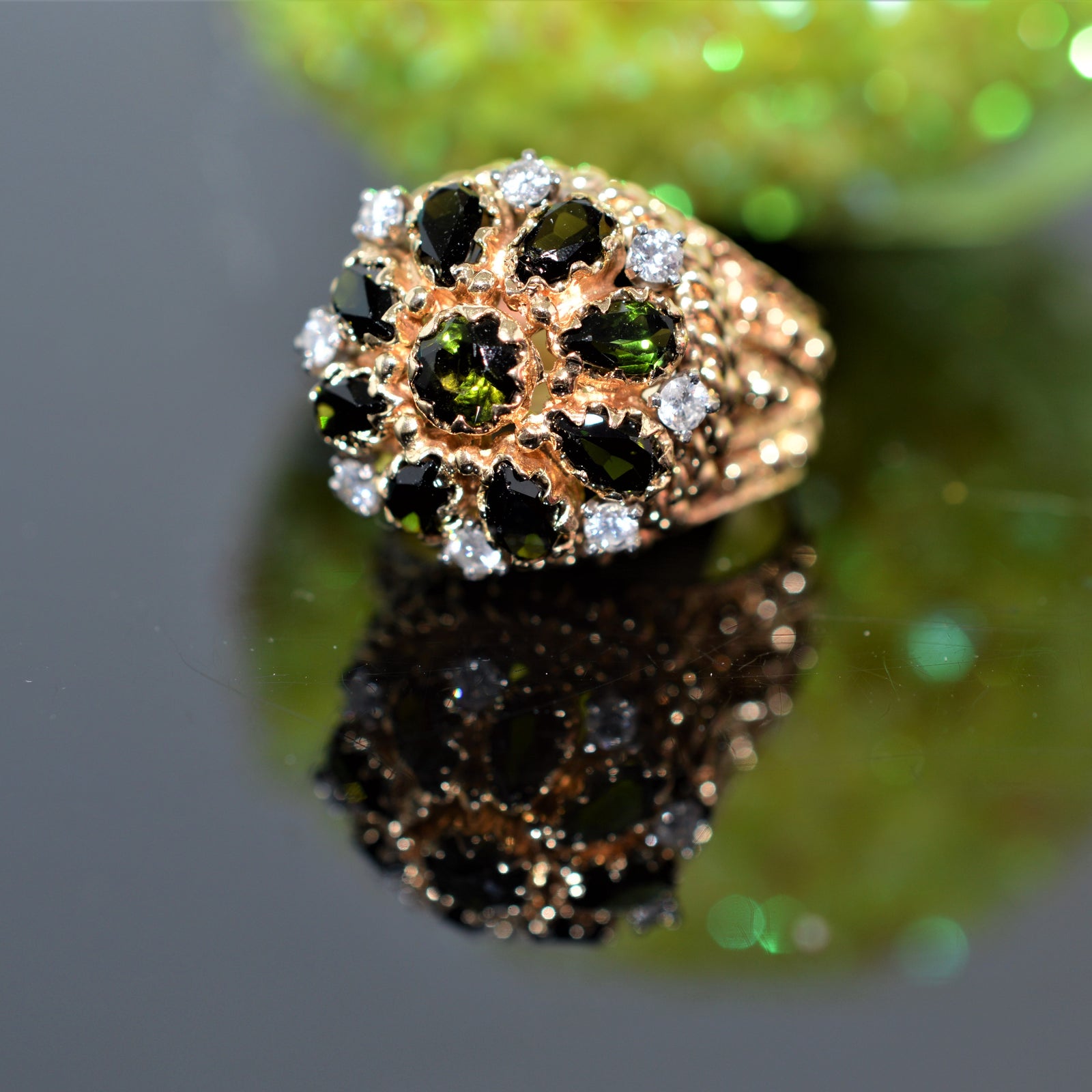 $895.00 USD14K Yellow Gold Green Tourmaline and Diamond Ring