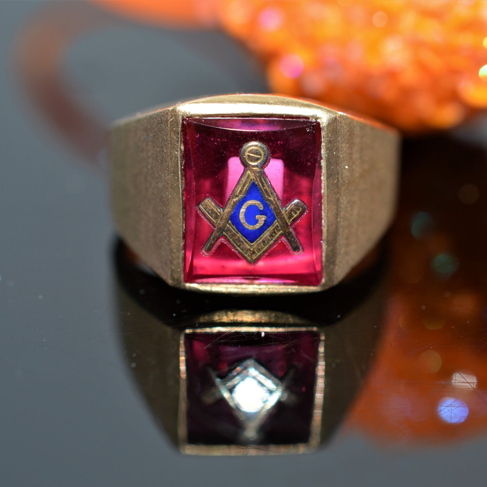 $500.00 USD10K Yellow Gold Oval Red Spinel Masonic Ring