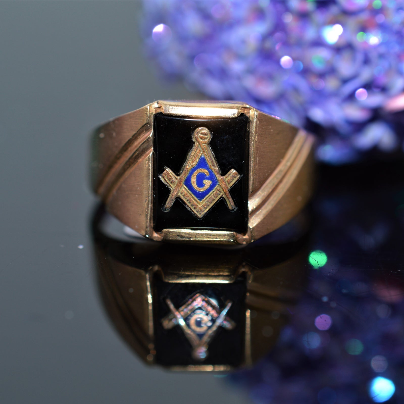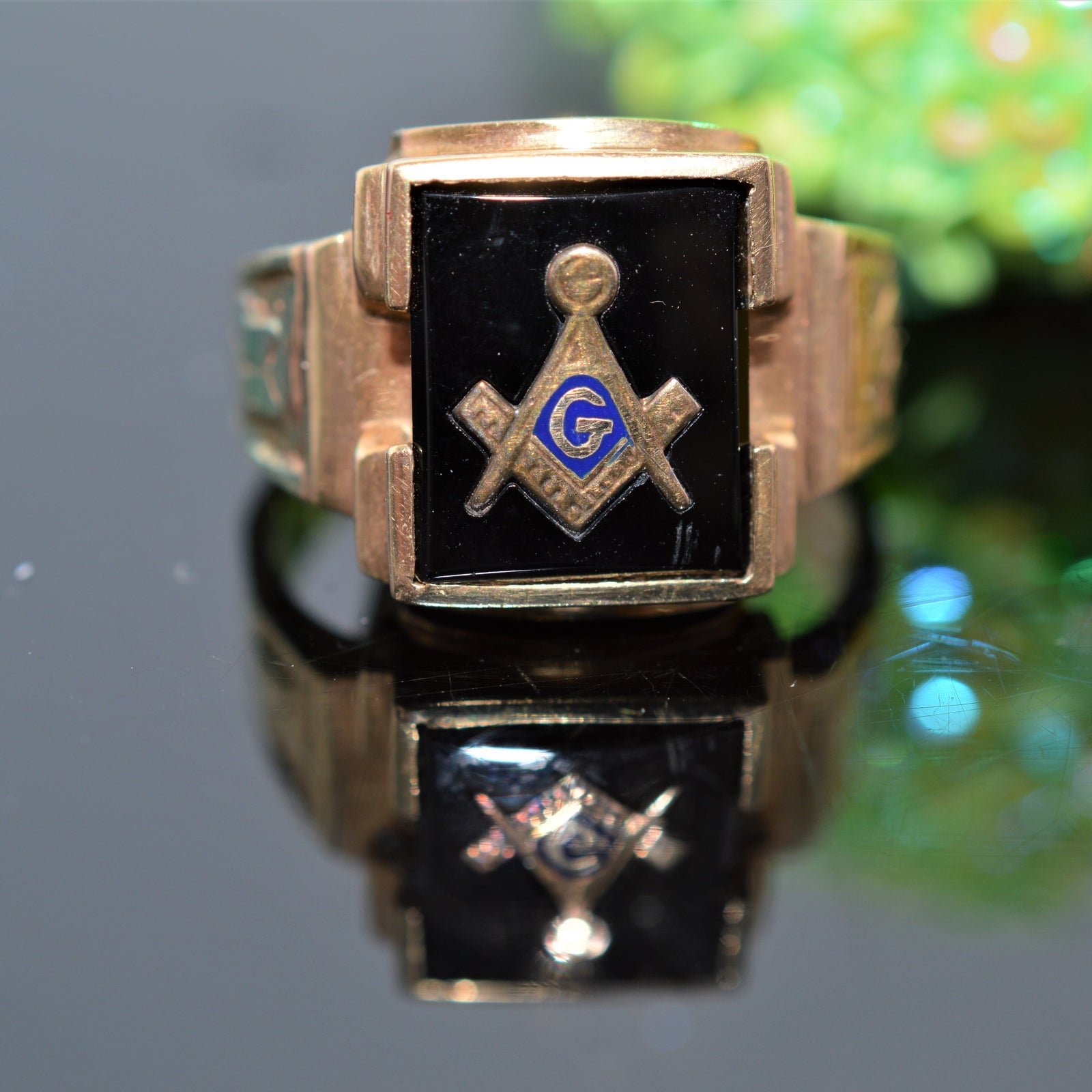 10K Yellow Gold 8x10mm Black Onyx Masonic Ring
