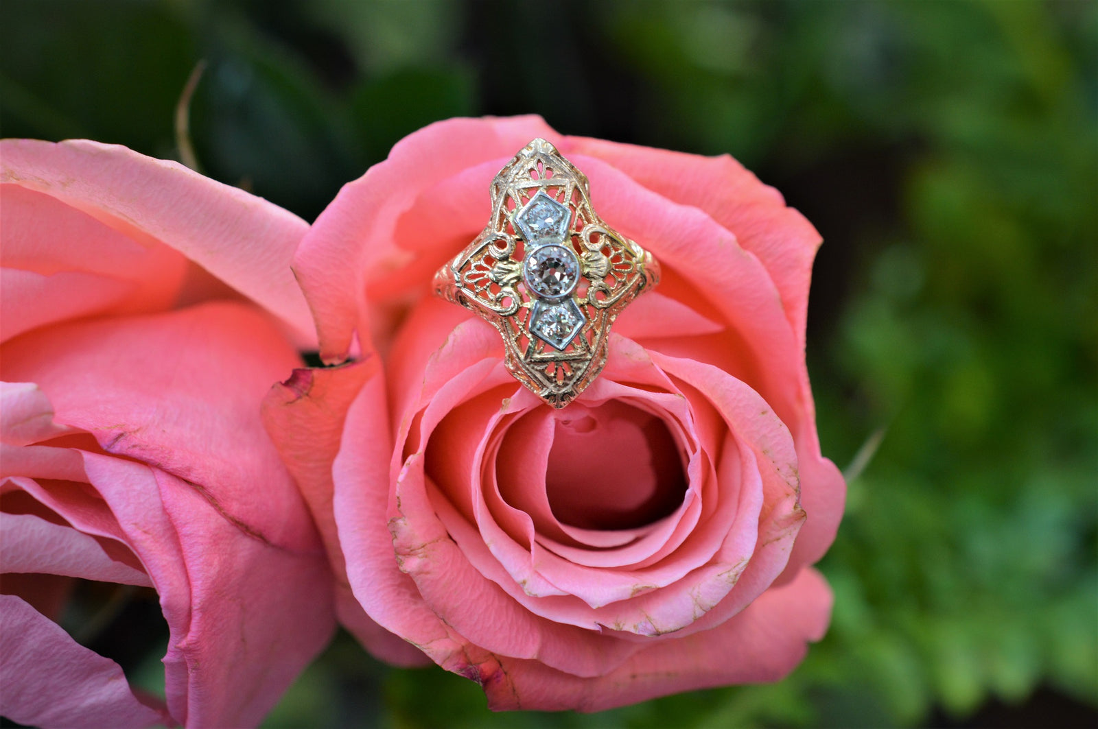 $1,995.00 USDA Ladies 14 Karat Rose Gold, Filigree Diamond Ring