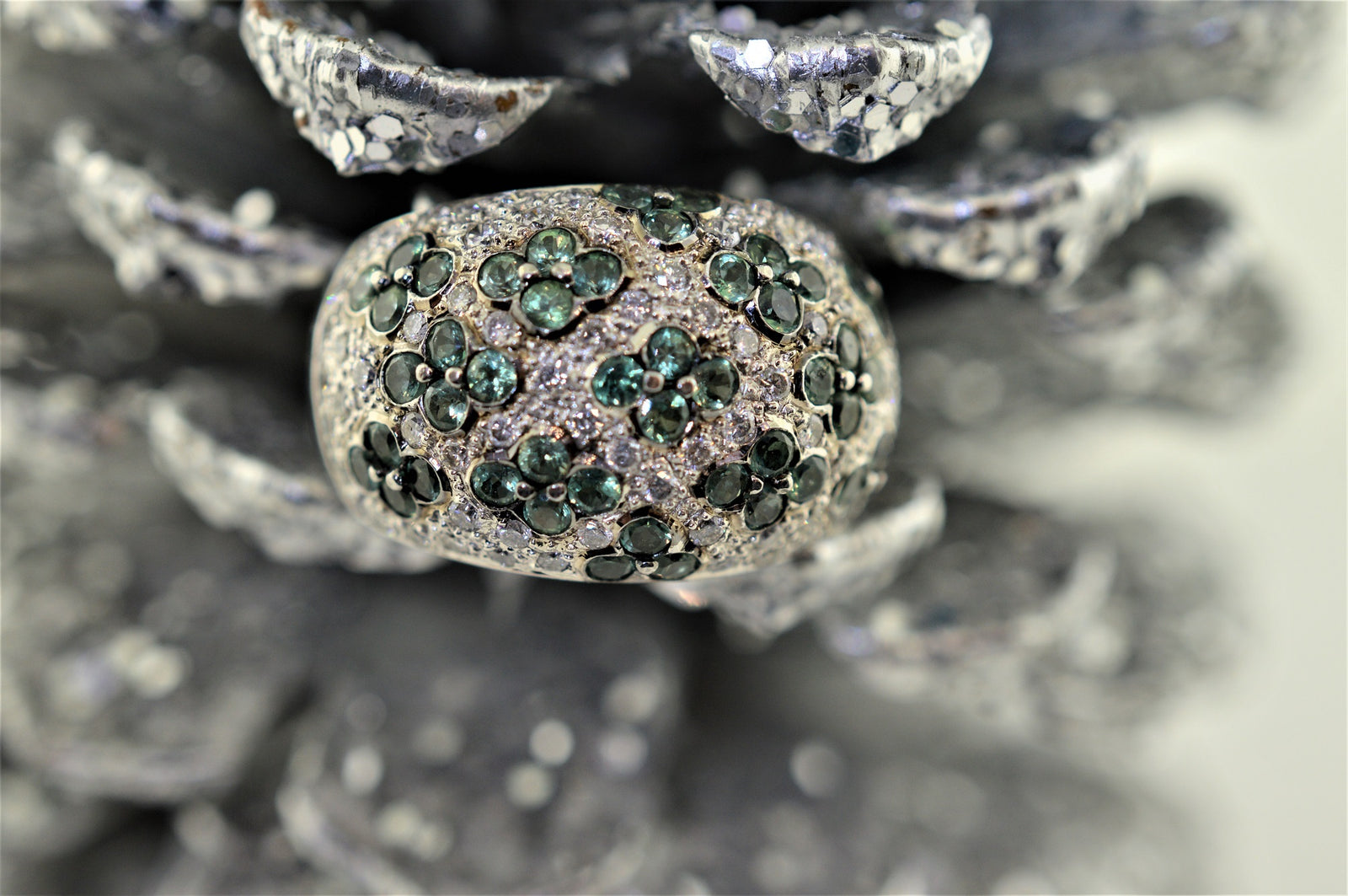 $1,275.00 USD14K White Gold LeVian Alexandrite and Diamond Dome Ring