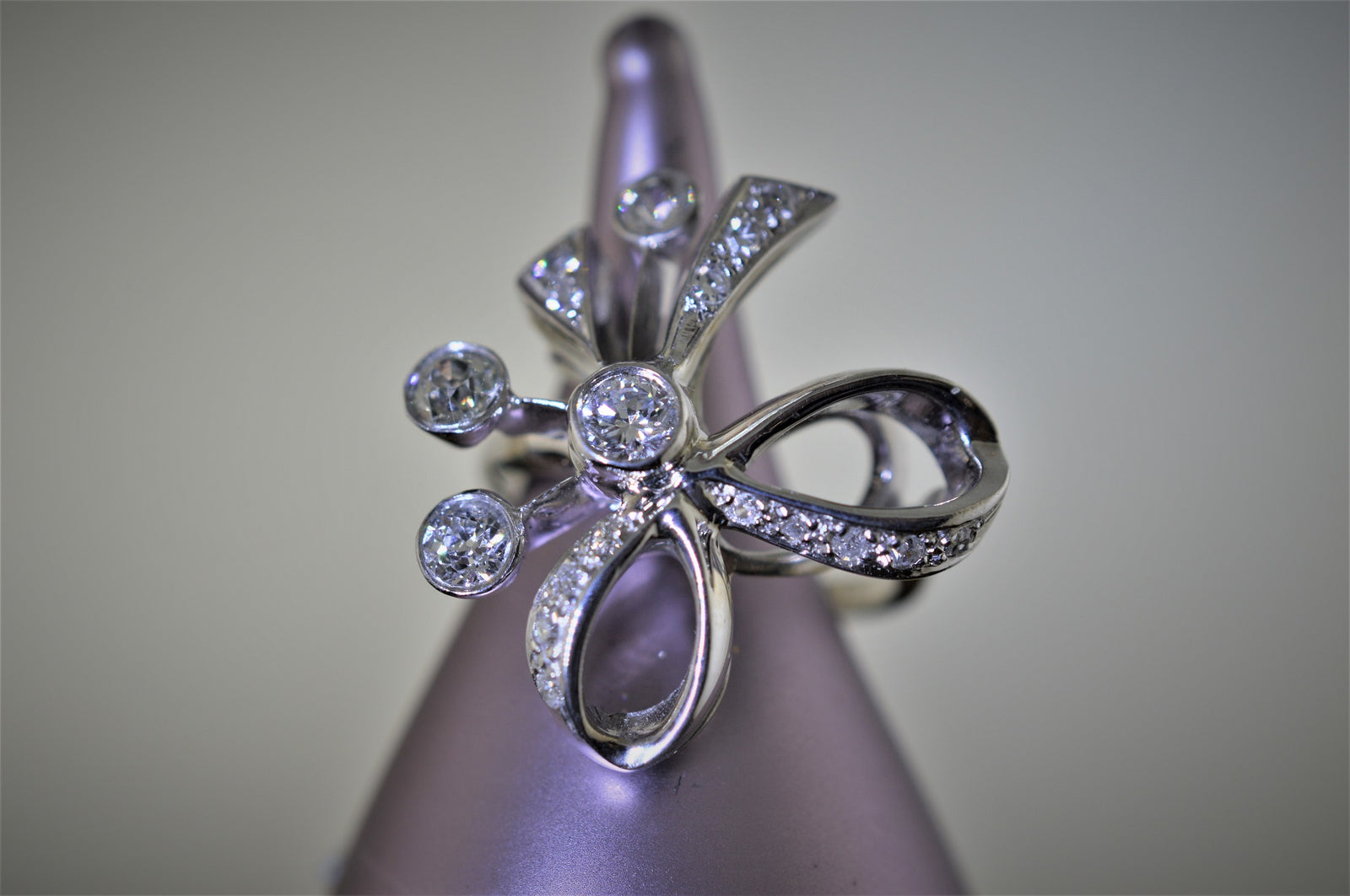 $850.00 USD14K White Gold Diamond "Bow Ring" with 18 Diamonds