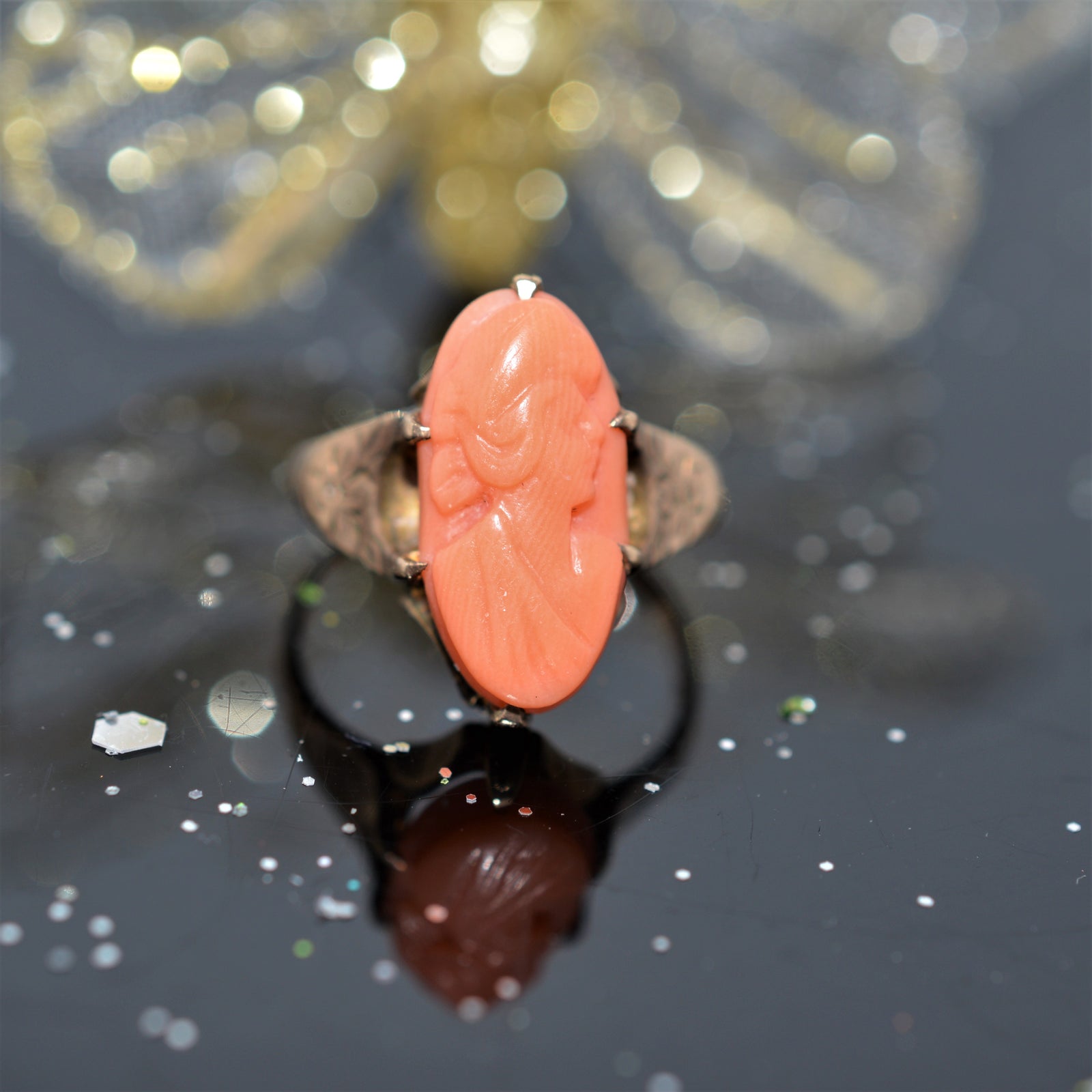 Sold OutOval Cameo Gold Ring Engraved 7-8-16 inside of the shank