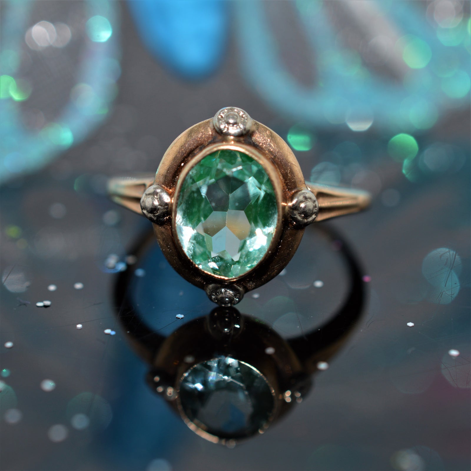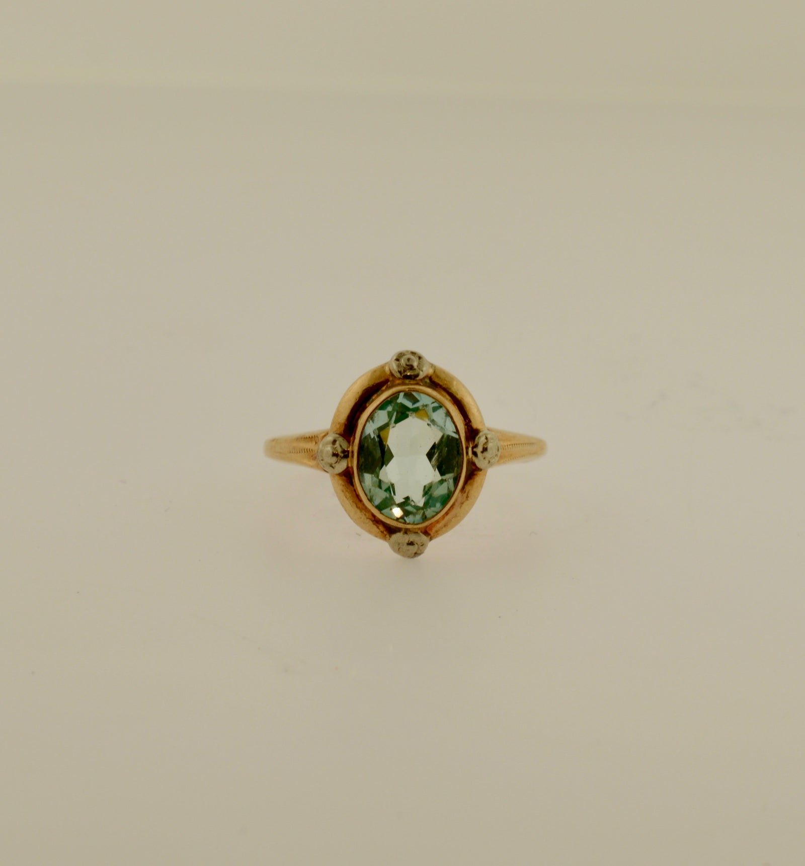 10K White Gold and Yellow Gold Oval Blue Zircon Ring