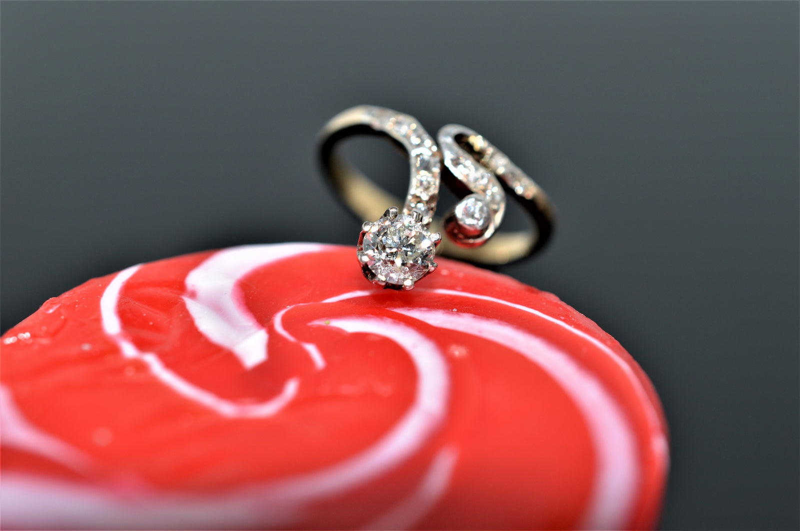 $625.00 USD14K Yellow Gold Antique Old Cut Diamond Gold Swirl Ring