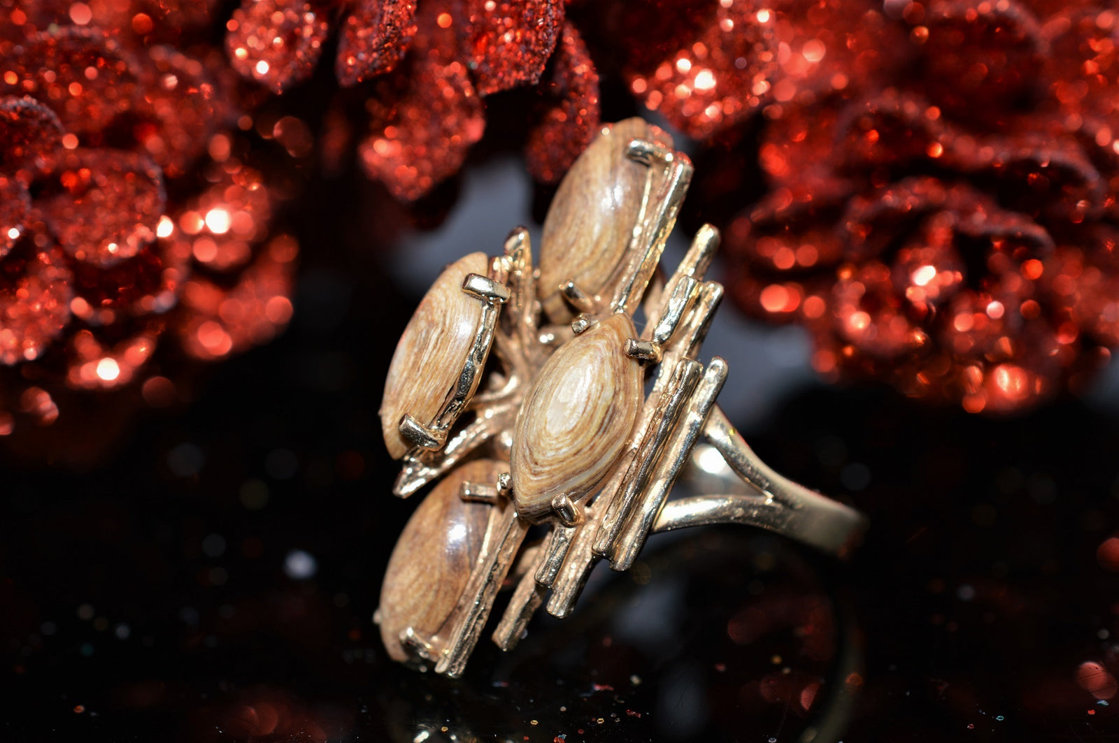 $1,095.00 USD14K Yellow Gold Unique Bamboo Style Wooden Gold Ring