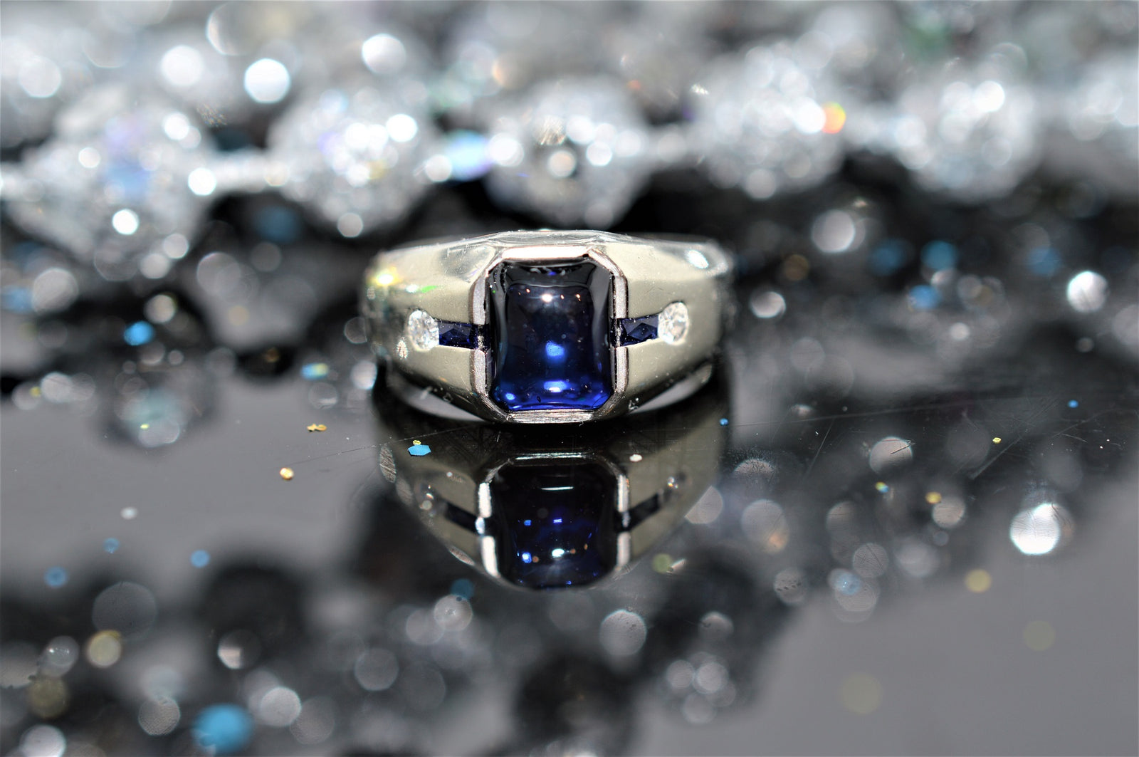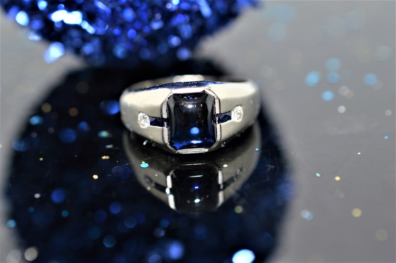 $225.00 USDSugarloaf Cabochon Sapphire and Diamond White Gold Ring