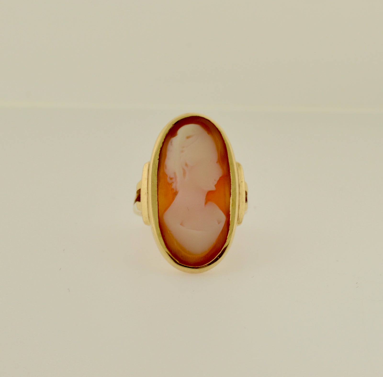 $675.00 USD10K Yellow Gold Antique Elongated Shell Cameo Gold Ring