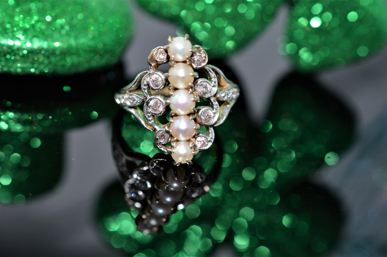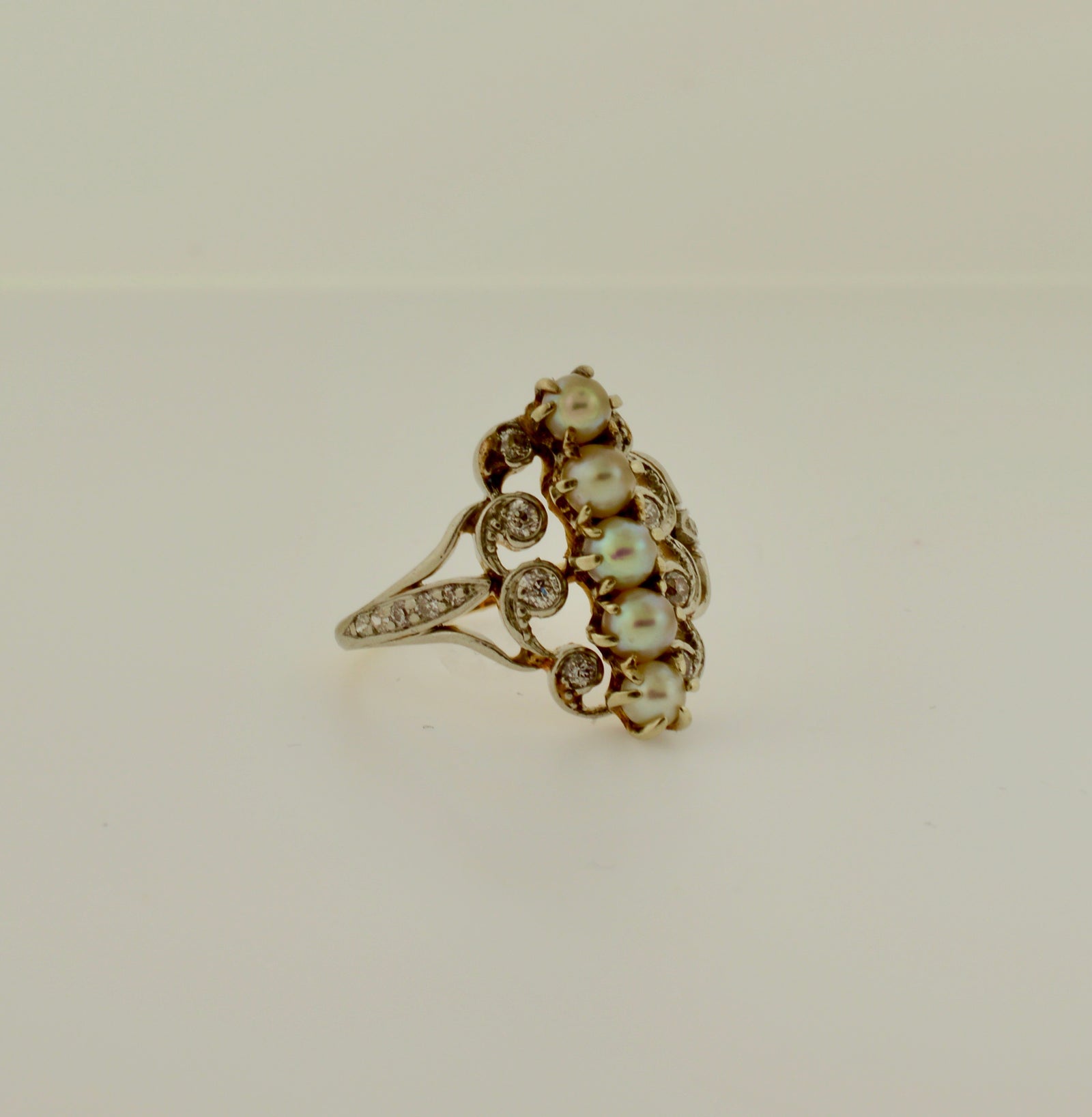 Sold Out14K Antique Platinum Topped Pearl and Diamond Ring