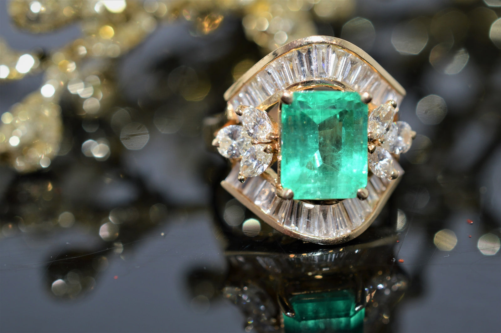 $795.00 USD14K Yellow Gold Genuine Emerald And Diamond Ring