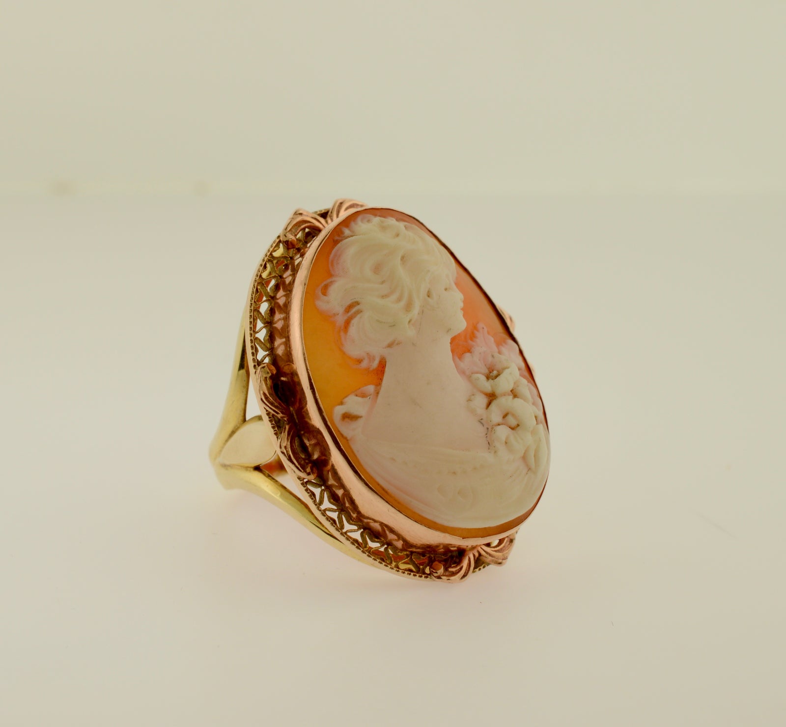 $1,100.00 USD14K Yellow and Rose Gold Large Oval Shell Cameo Ring