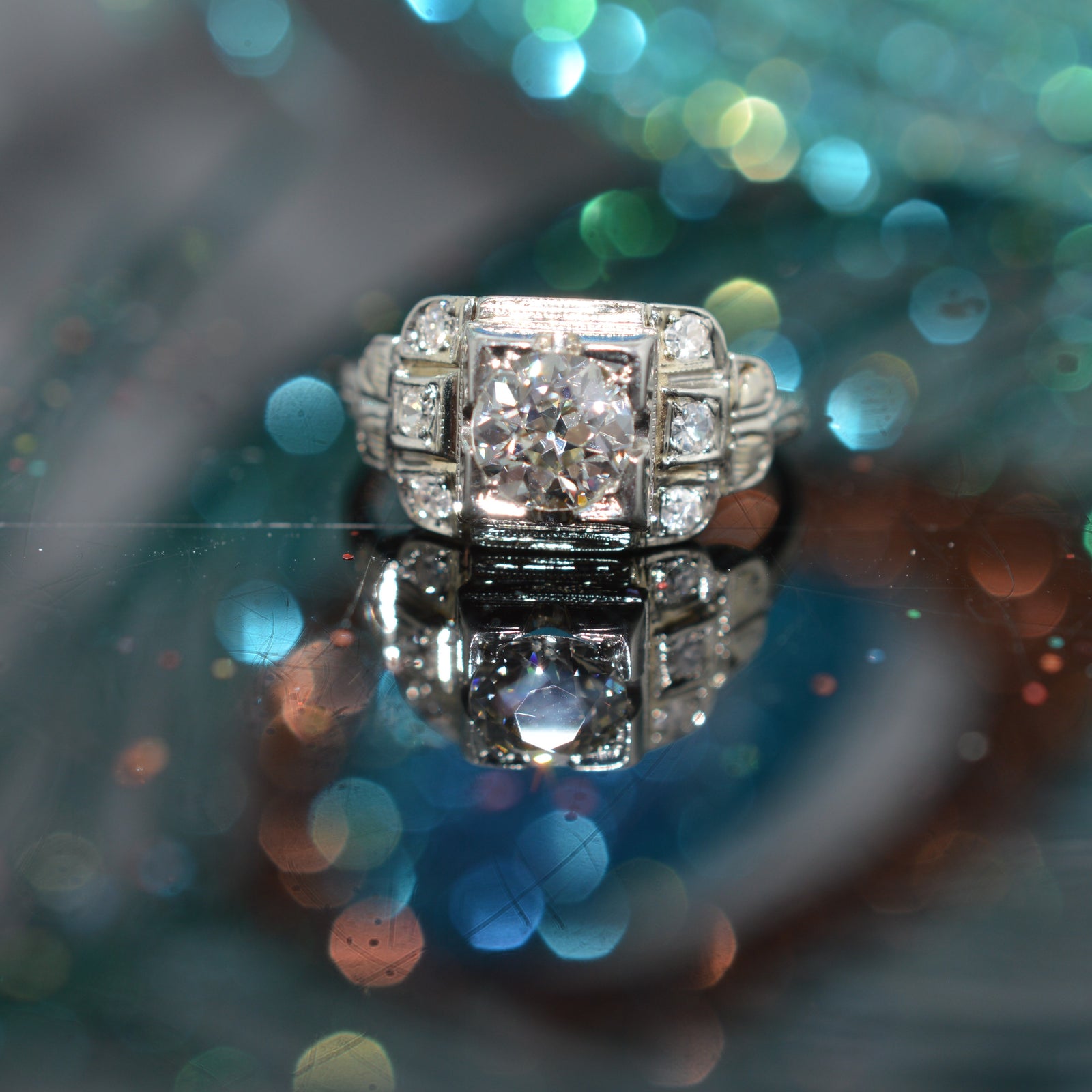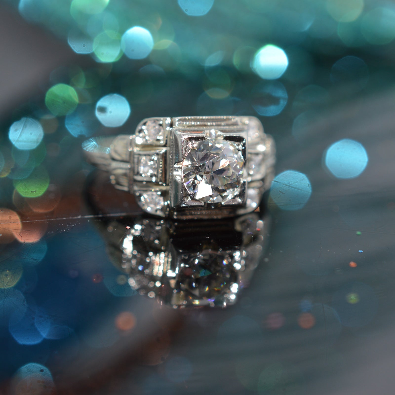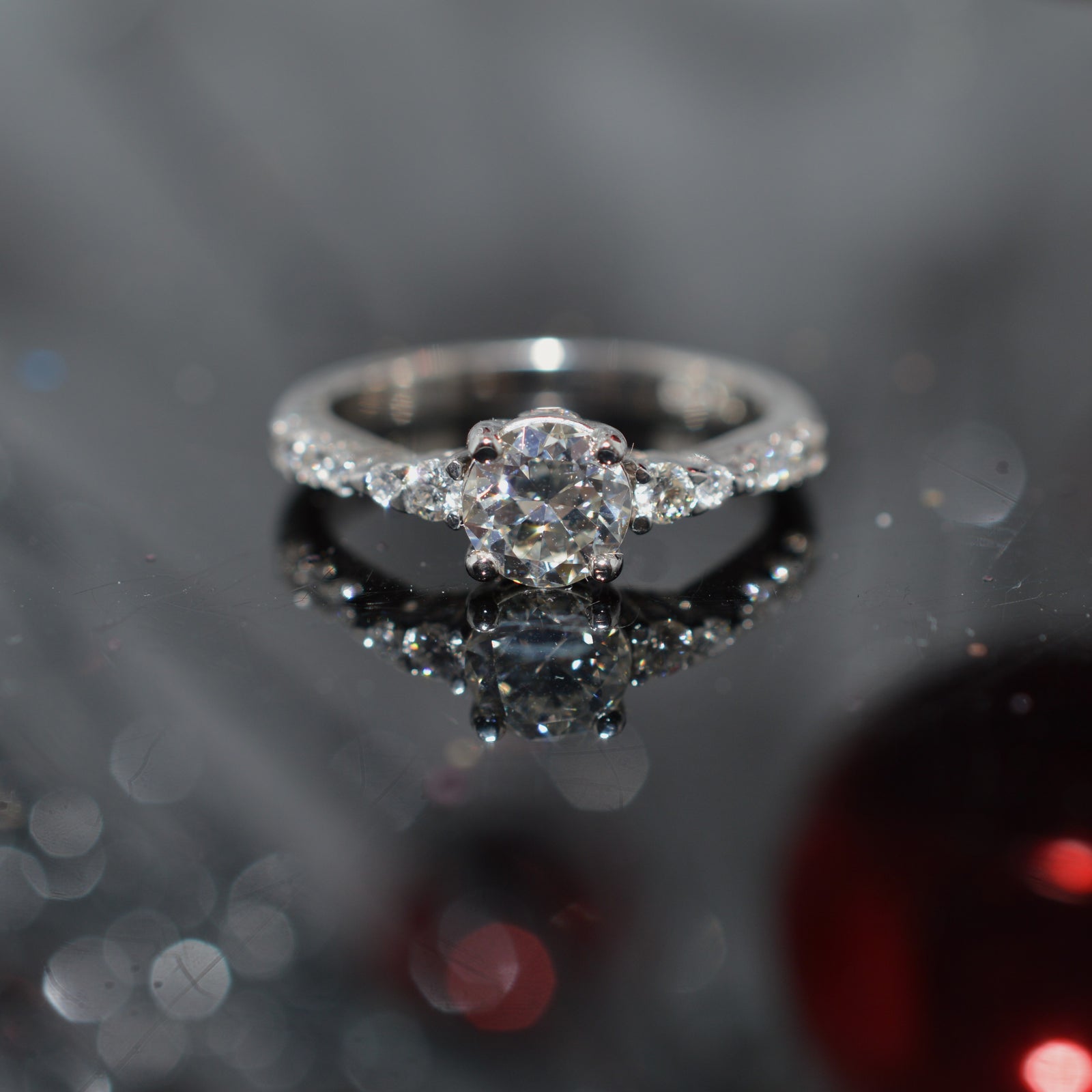18K White Gold Old European Cut Diamond Engagement Ring