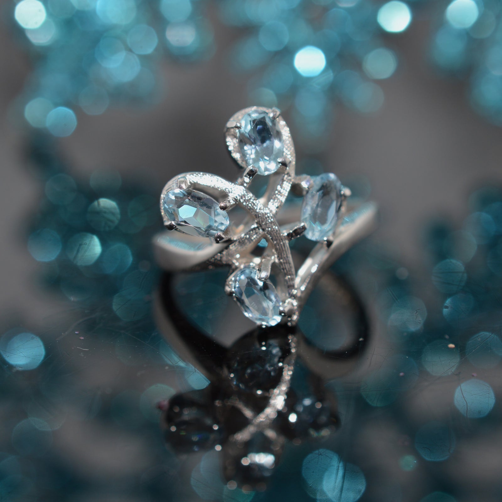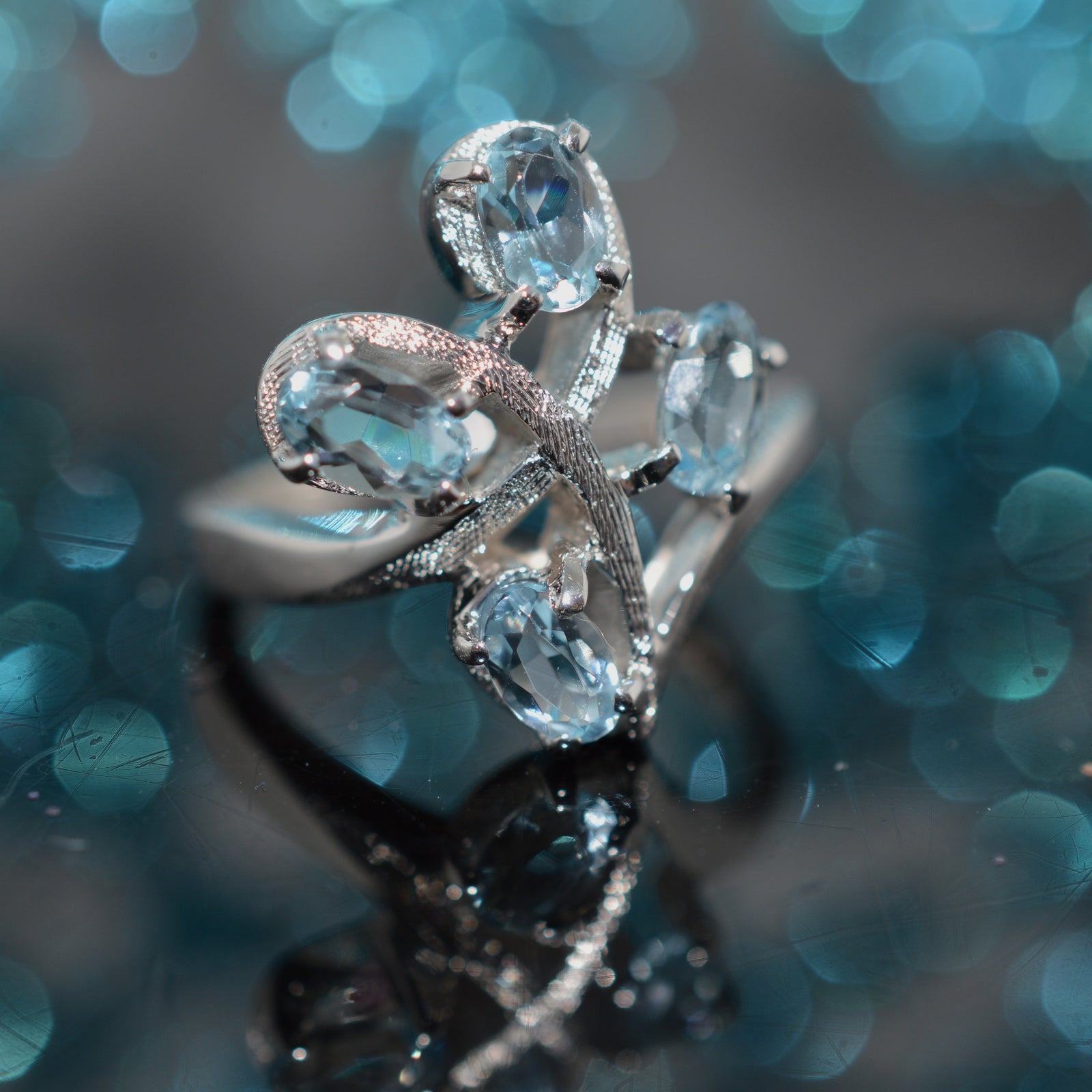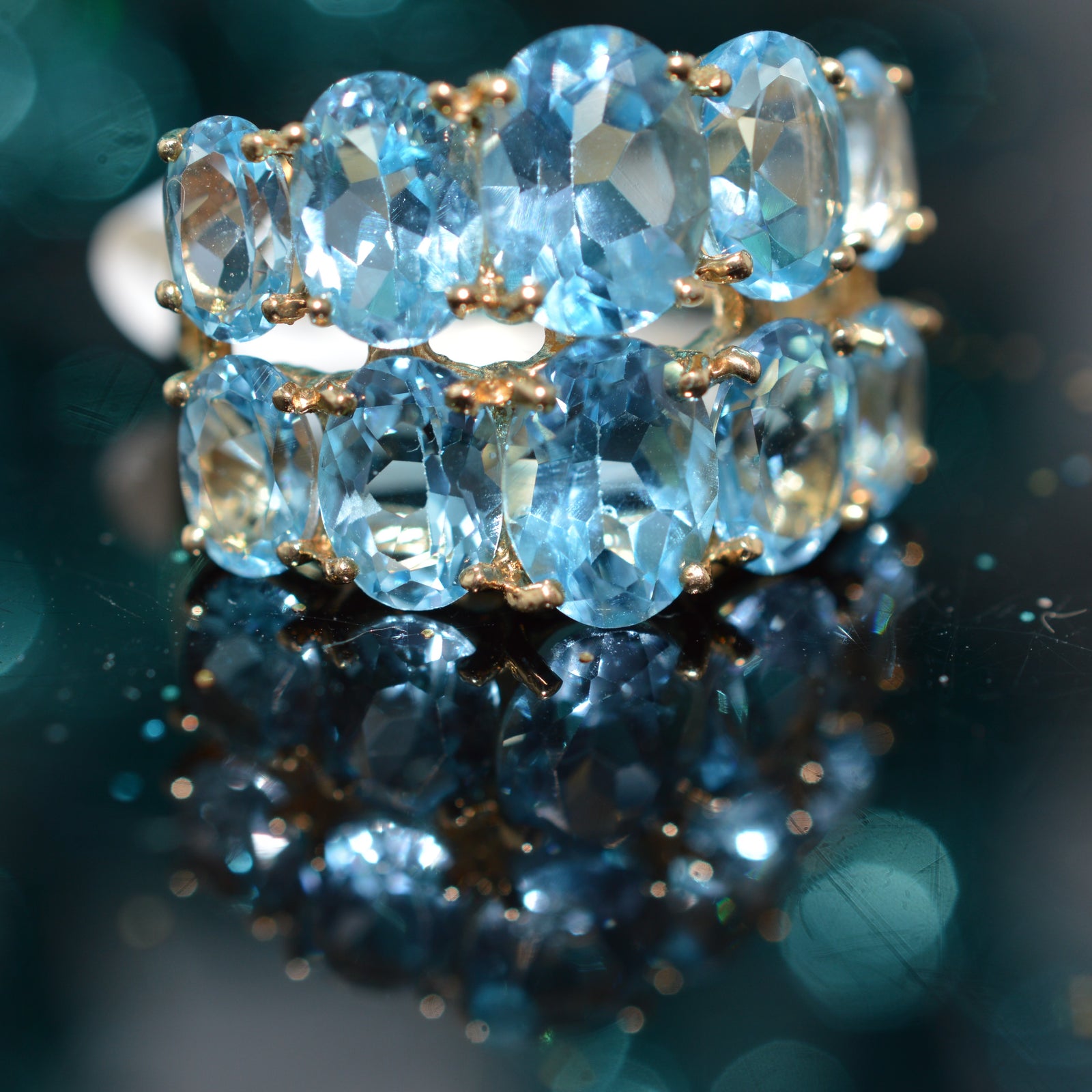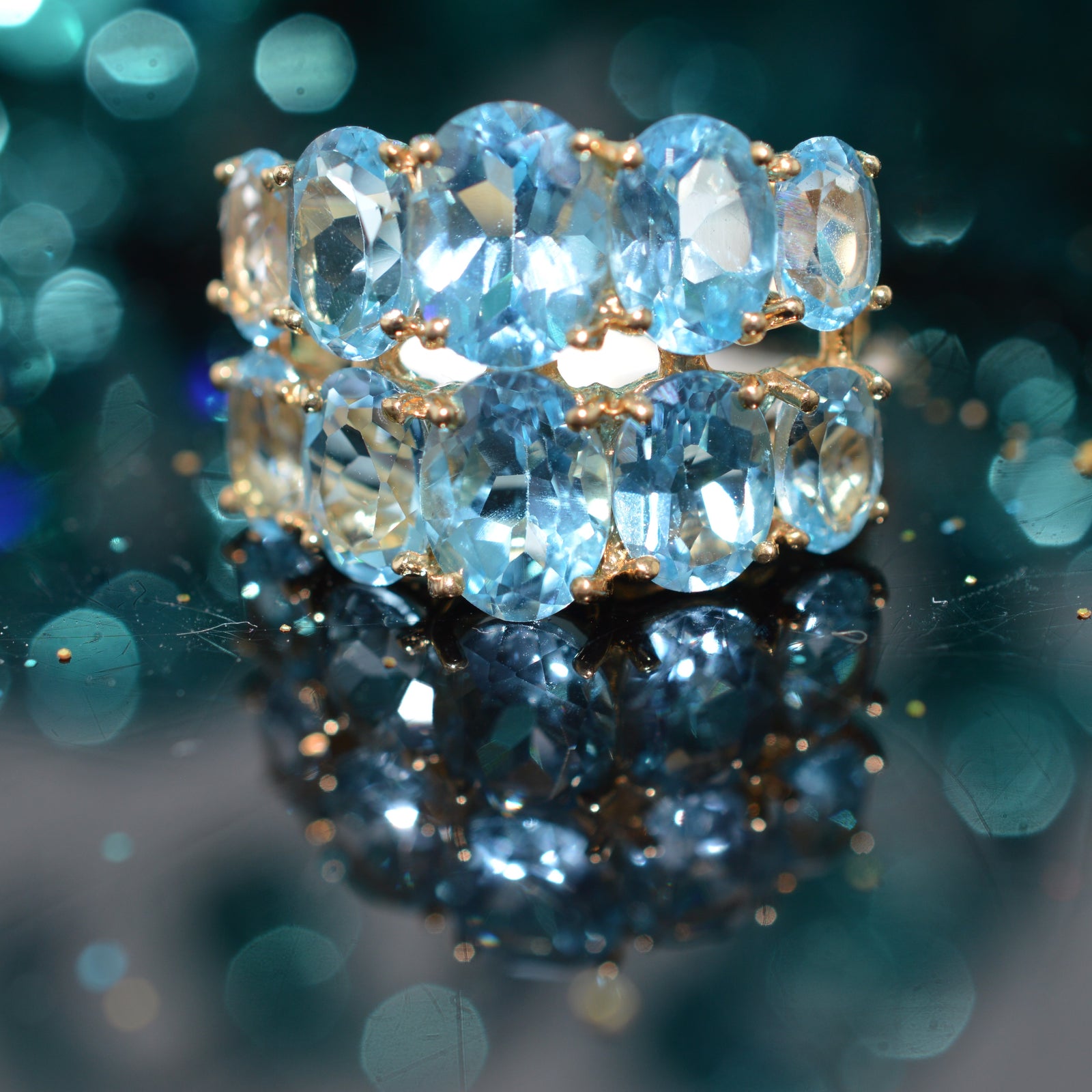 $245.00 USD10K Yellow Gold Two Row Oval Blue Topaz Ring