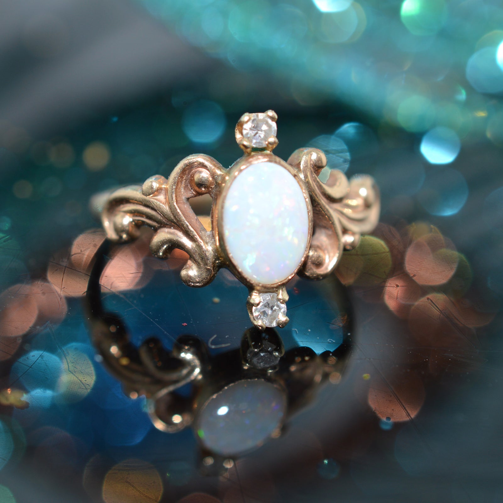 $5,950.00 USD10K Yellow Gold Opal And Two Diamond Ring
