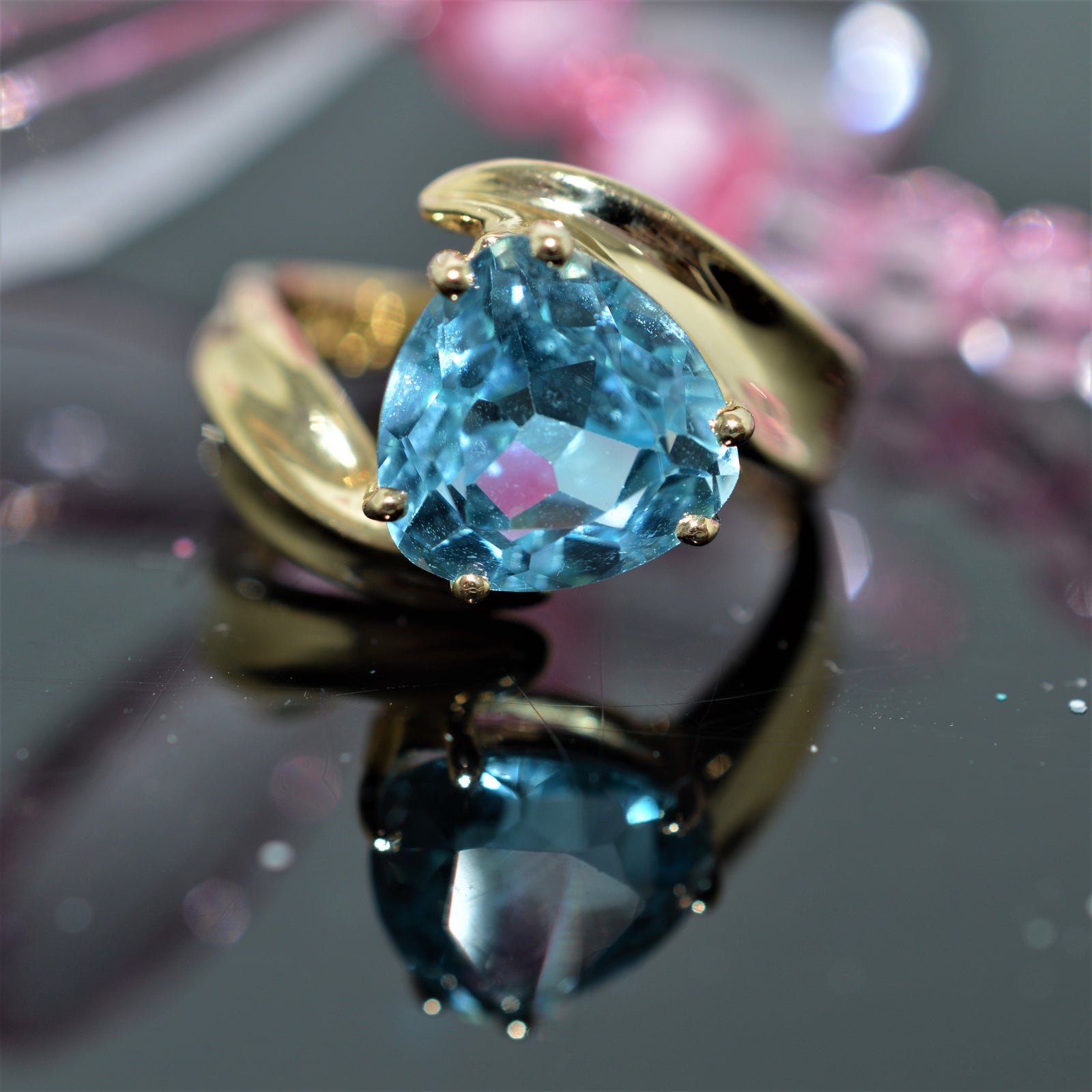 $575.00 USD14K Yellow Gold Trillion Cut Blue Topaz Ring