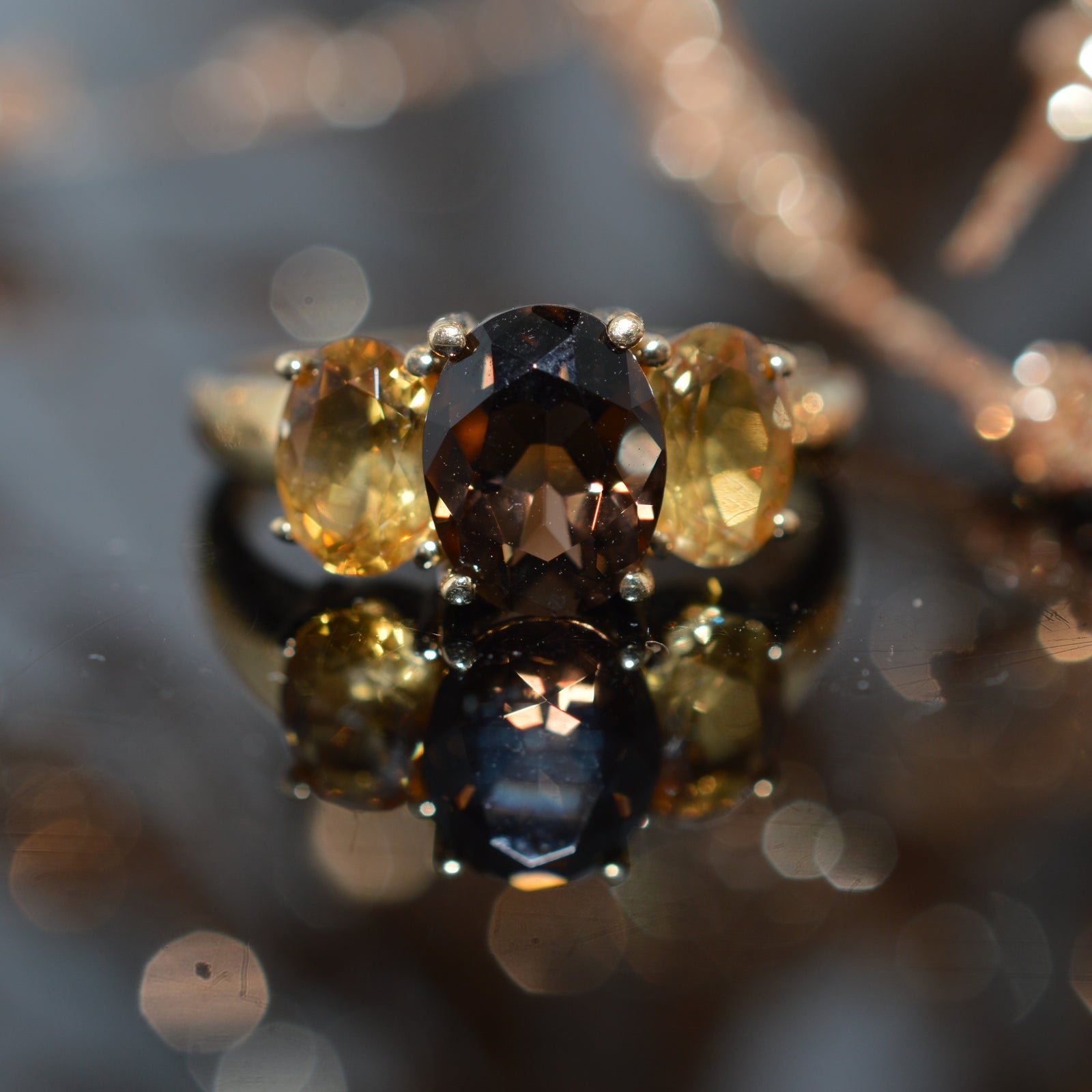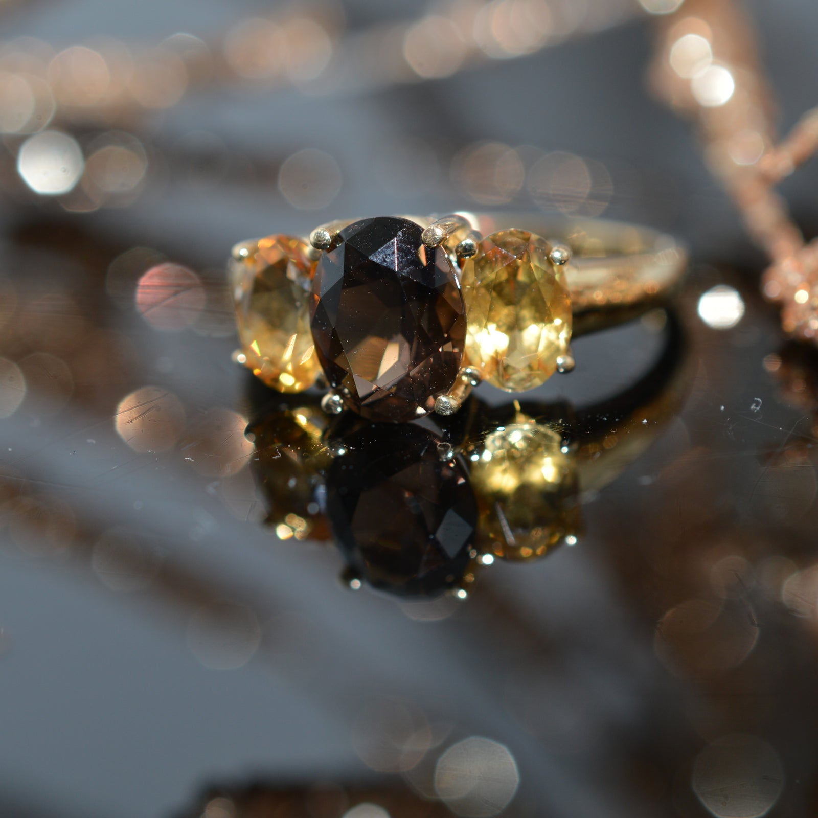 $650.00 USD14K Yellow Gold Oval Cut Smoky Quartz And Citrine Ring