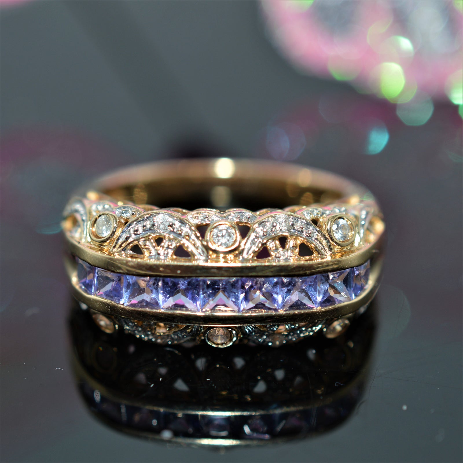 10K Yellow Gold Tanzanite And Diamond Band Ring