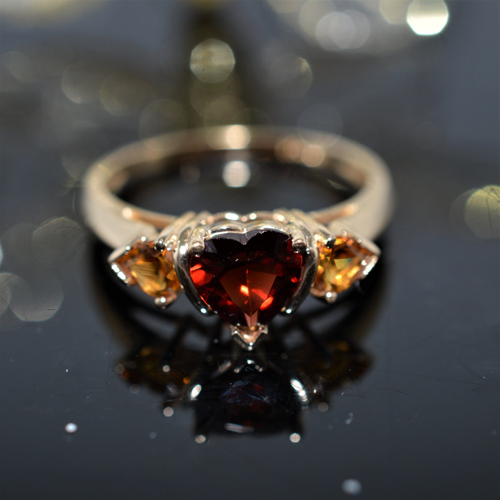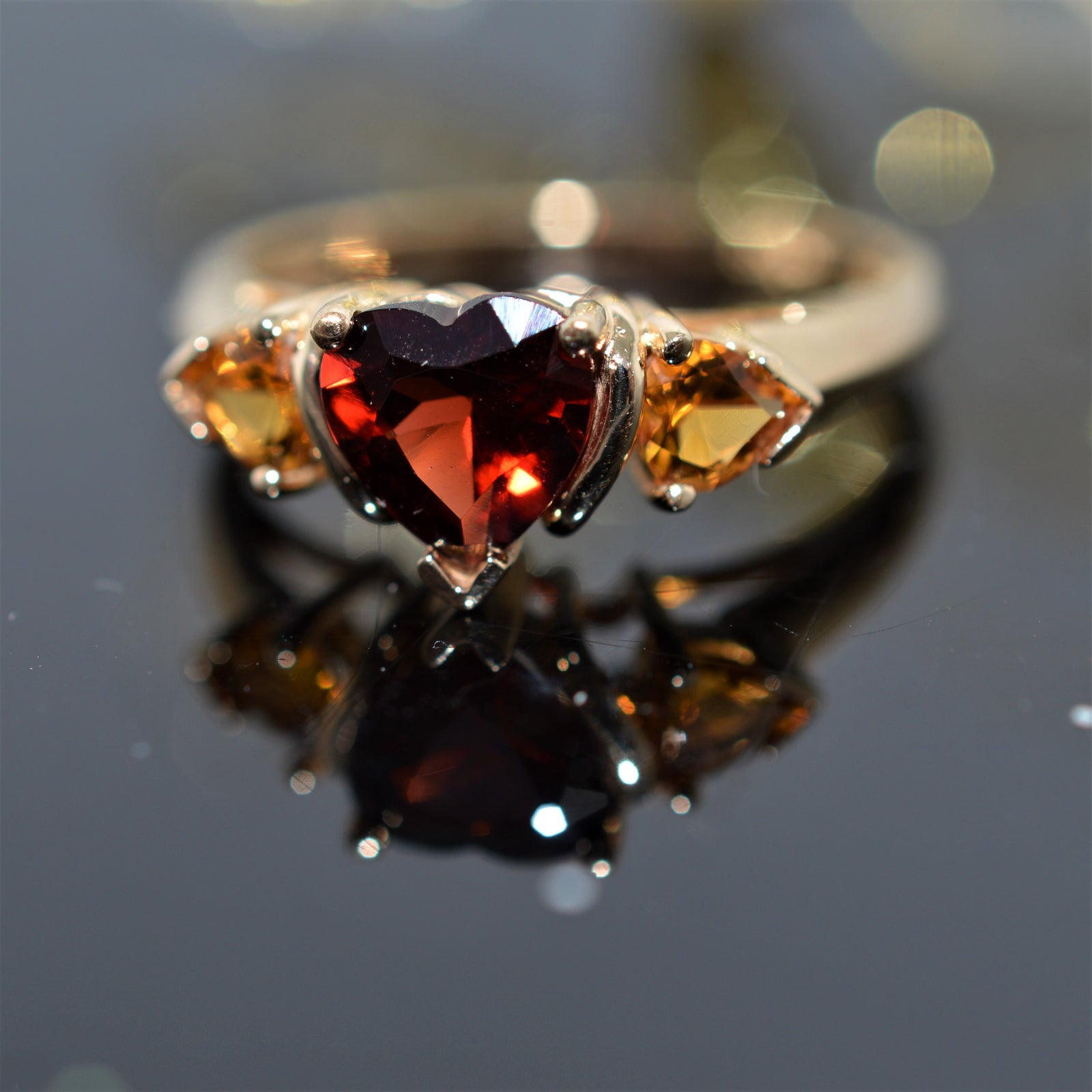 Sold Out14K Yellow Gold Heart Cut Red And Orange Garnet Ring
