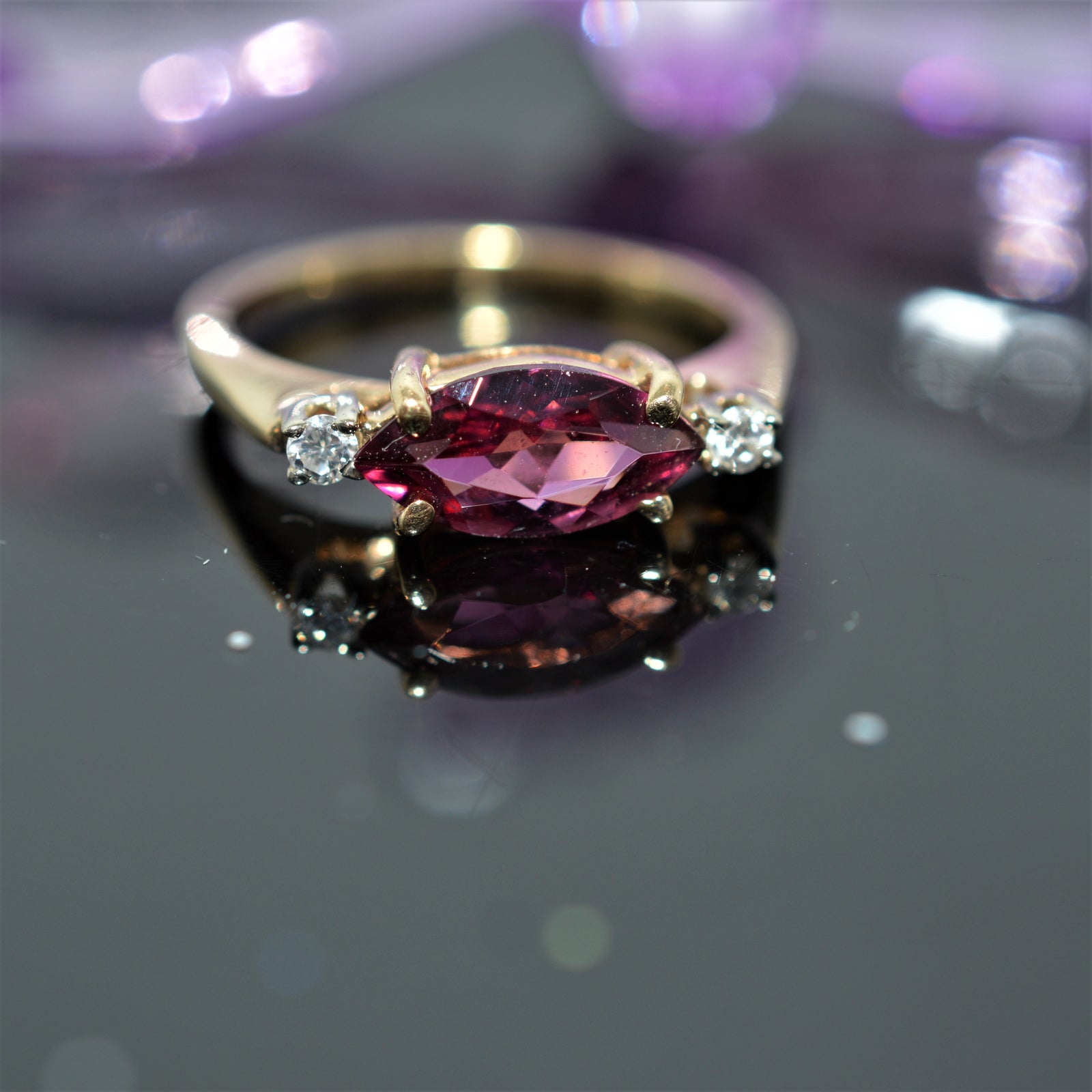 $260.00 USD14K Yellow Gold Sideways Set Marquise Pink Tourmaline And Diamond Ring