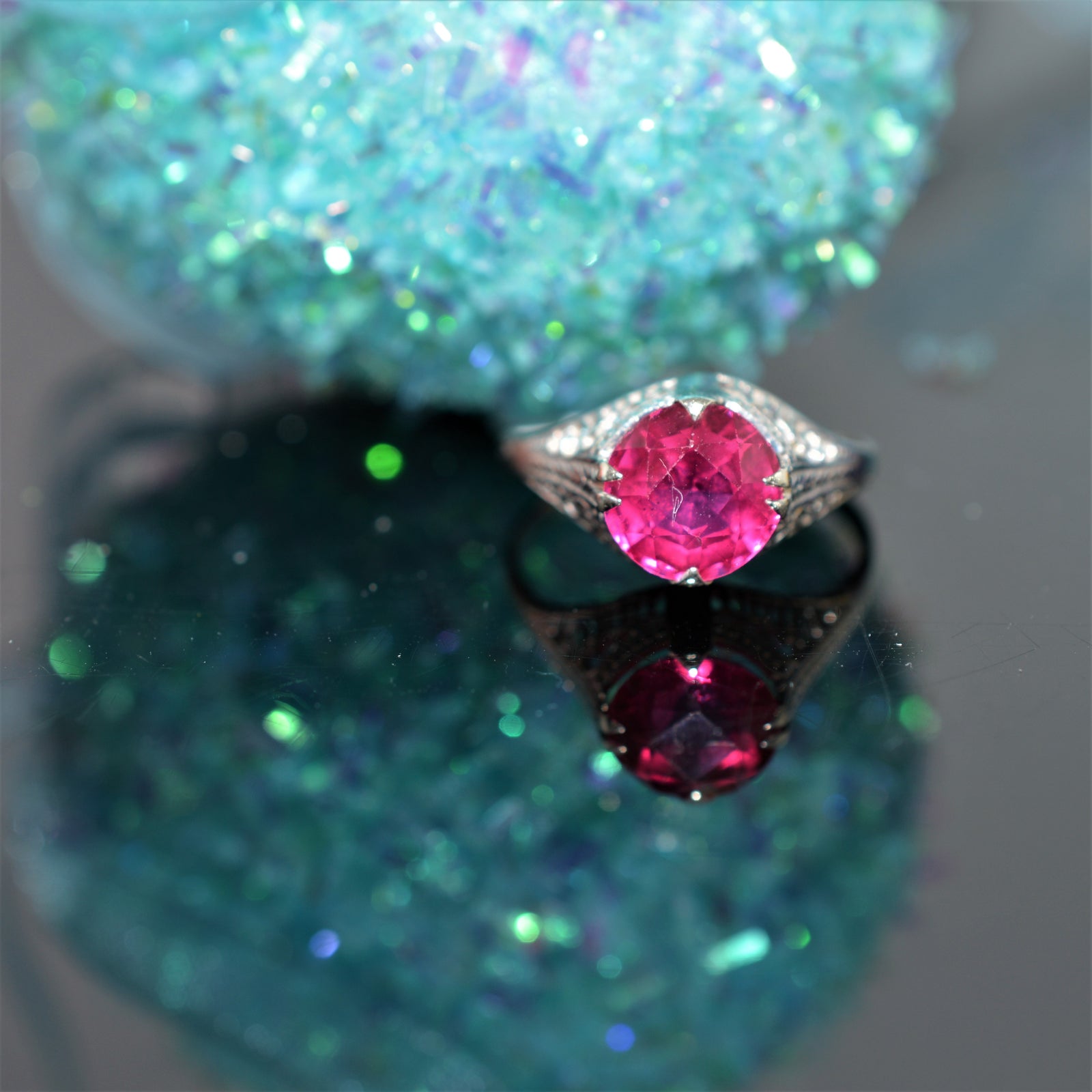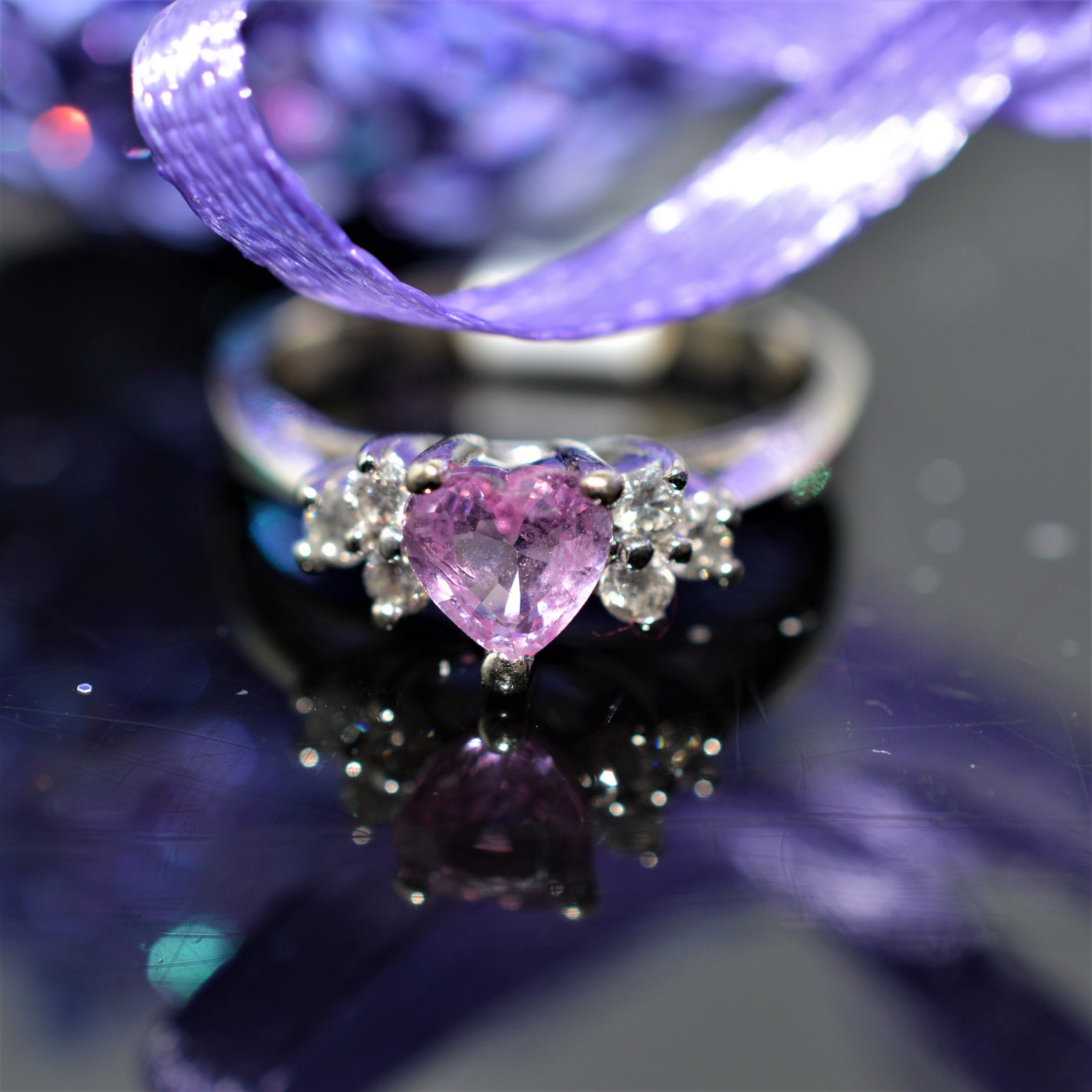$2,295.00 USD14K White Gold Heart Shape Pink Sapphire and Diamond Ring