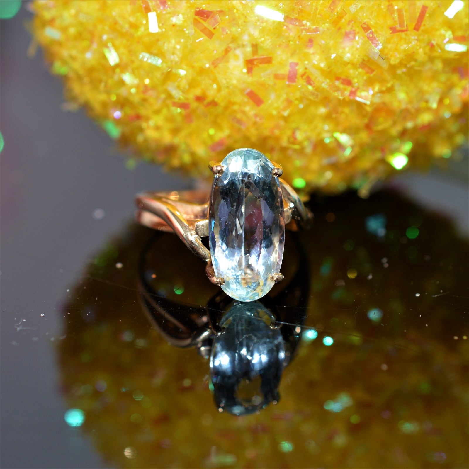 $875.00 USD14k Yellow Gold Elongated Oval Blue Topaz Ring