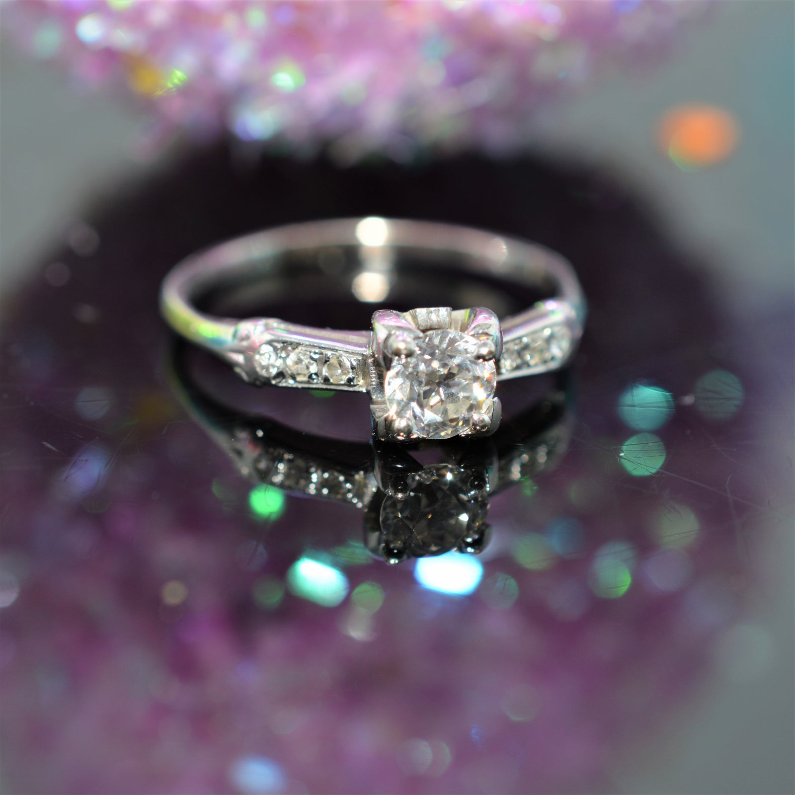 $695.00 USDLadies 18K White Gold Old European Cut Diamond Engagement Ring