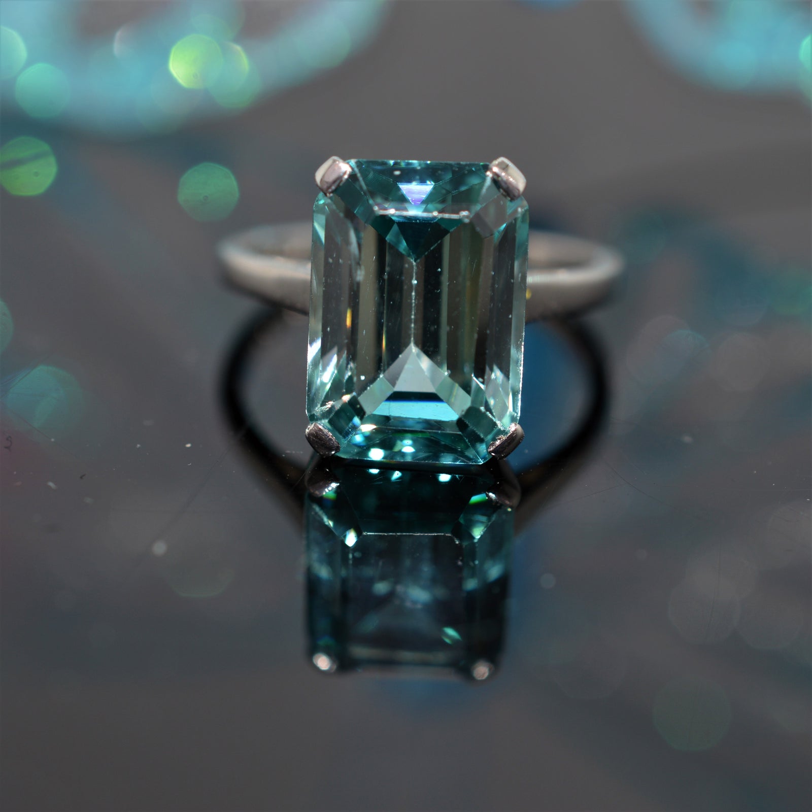Platinum Ring Set With an Emerald Cut Blue Zircon