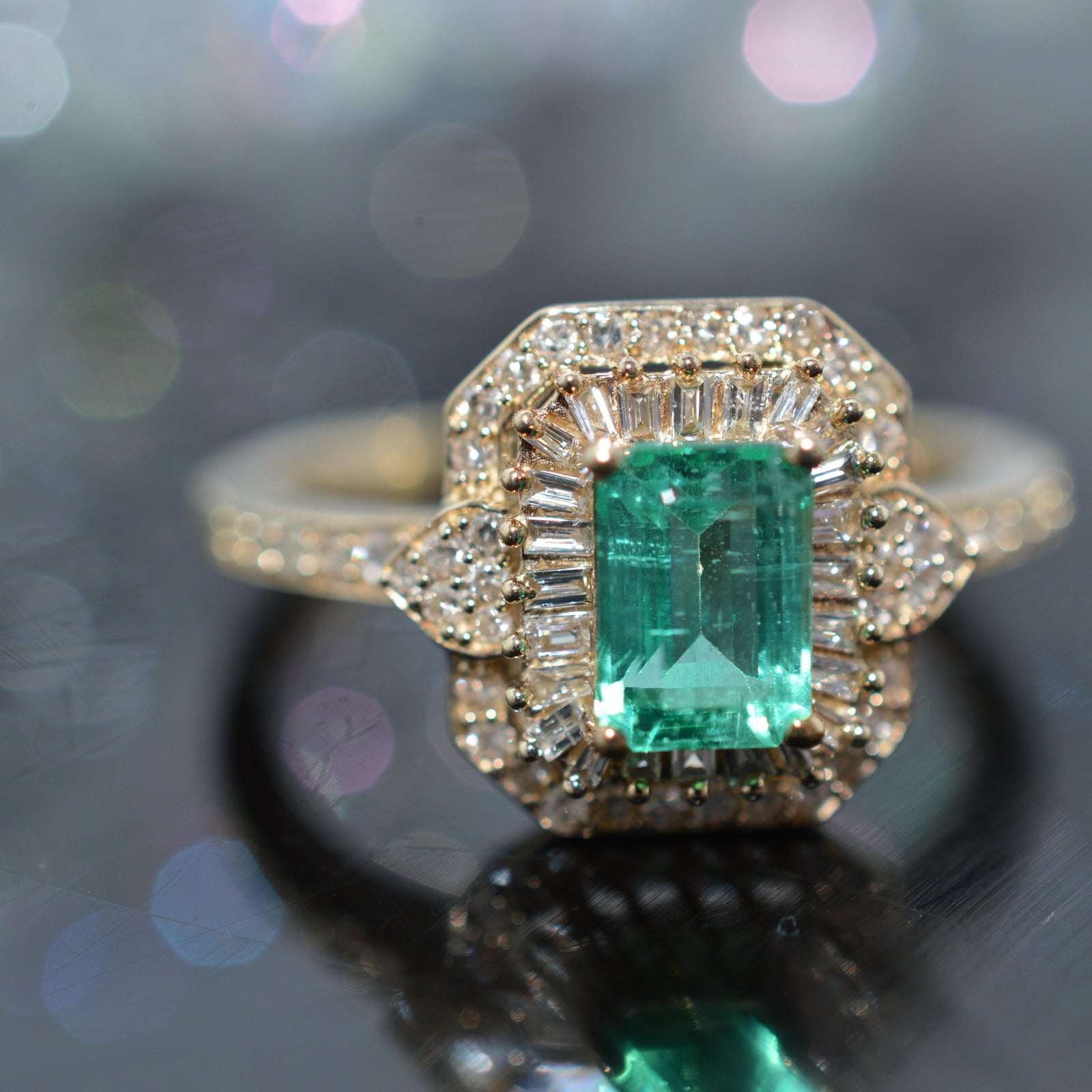 $945.00 USD14K White Gold Stunning Emerald Cut Emerald And Diamond Ring