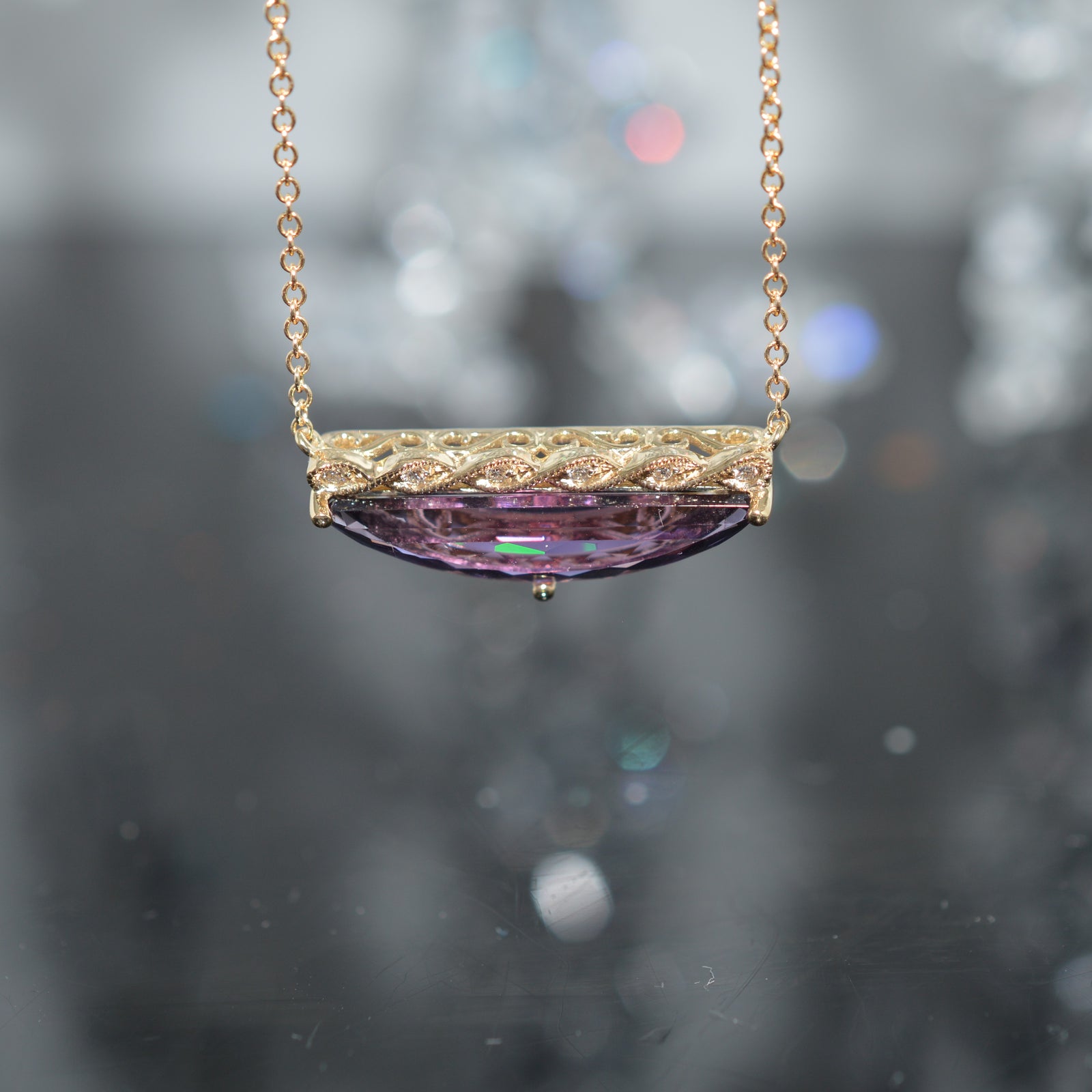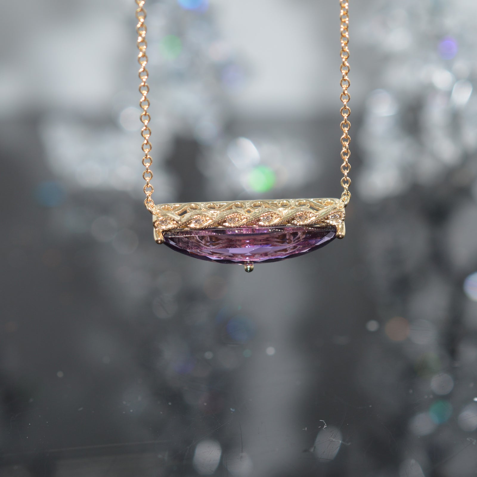 $2,100.00 USD14K Yellow Gold Half-Moon Cut Amethyst & Diamond Necklace