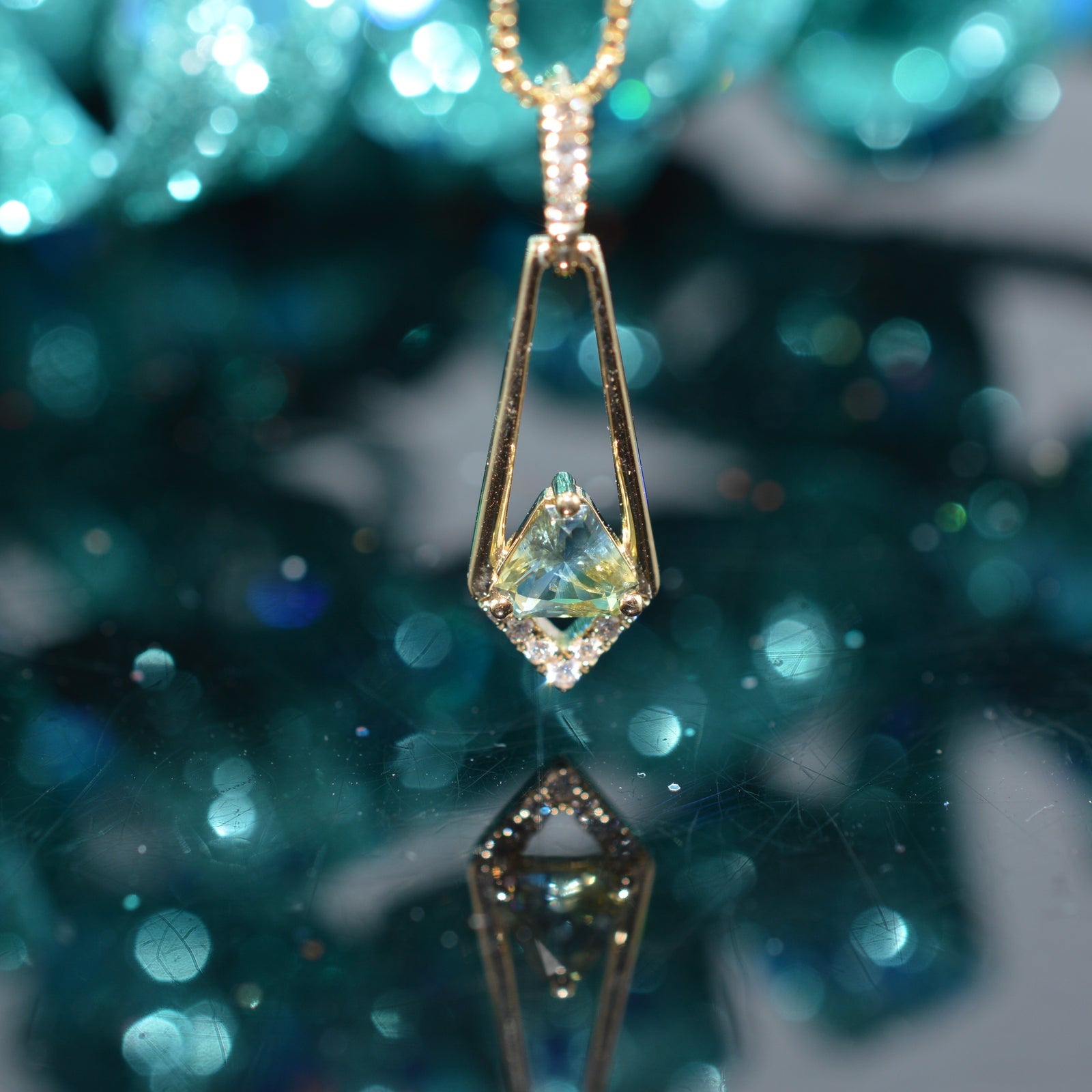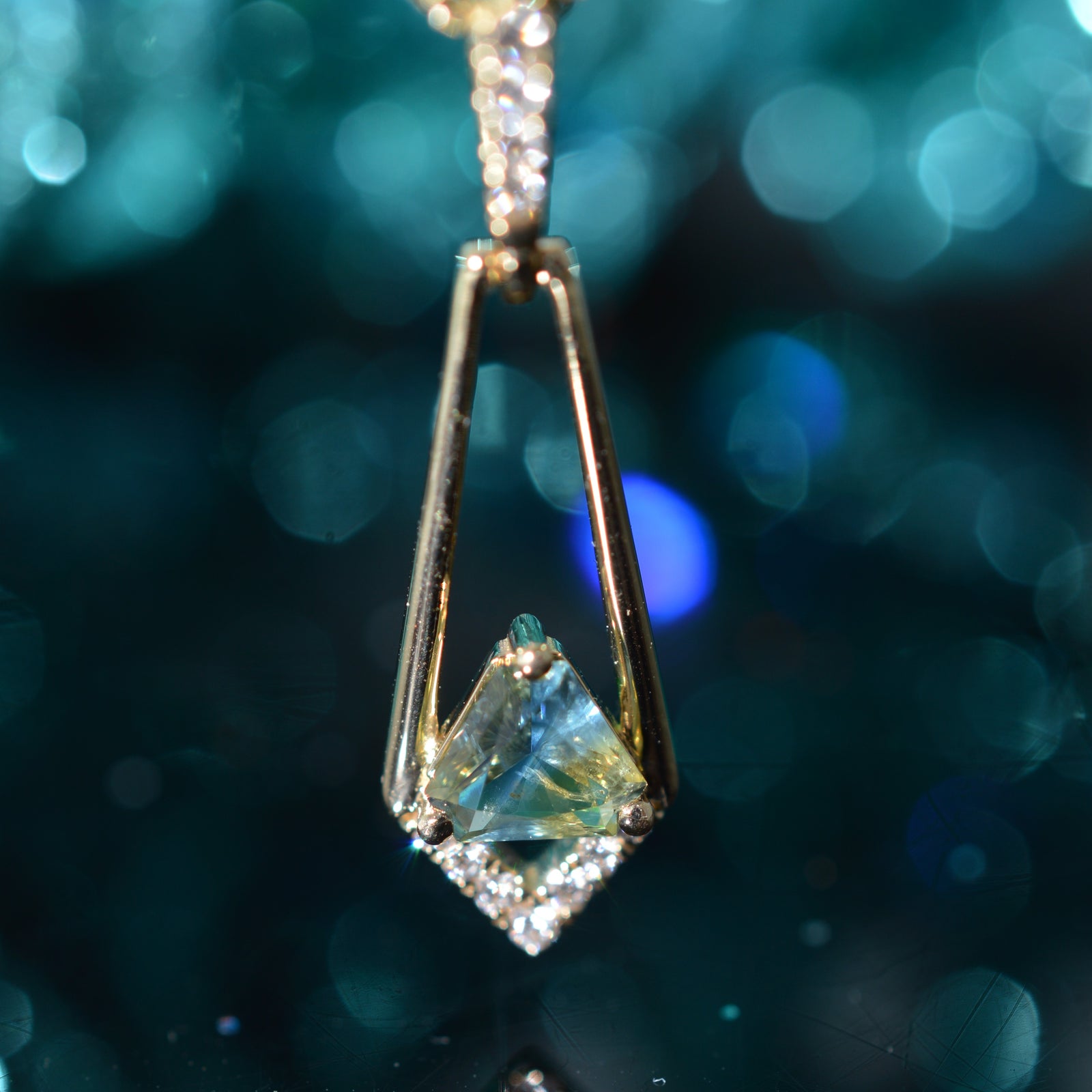 $2,200.00 USD14K Yellow Gold Bi-Color Sapphire (Blue & Gold) And Diamond Necklace