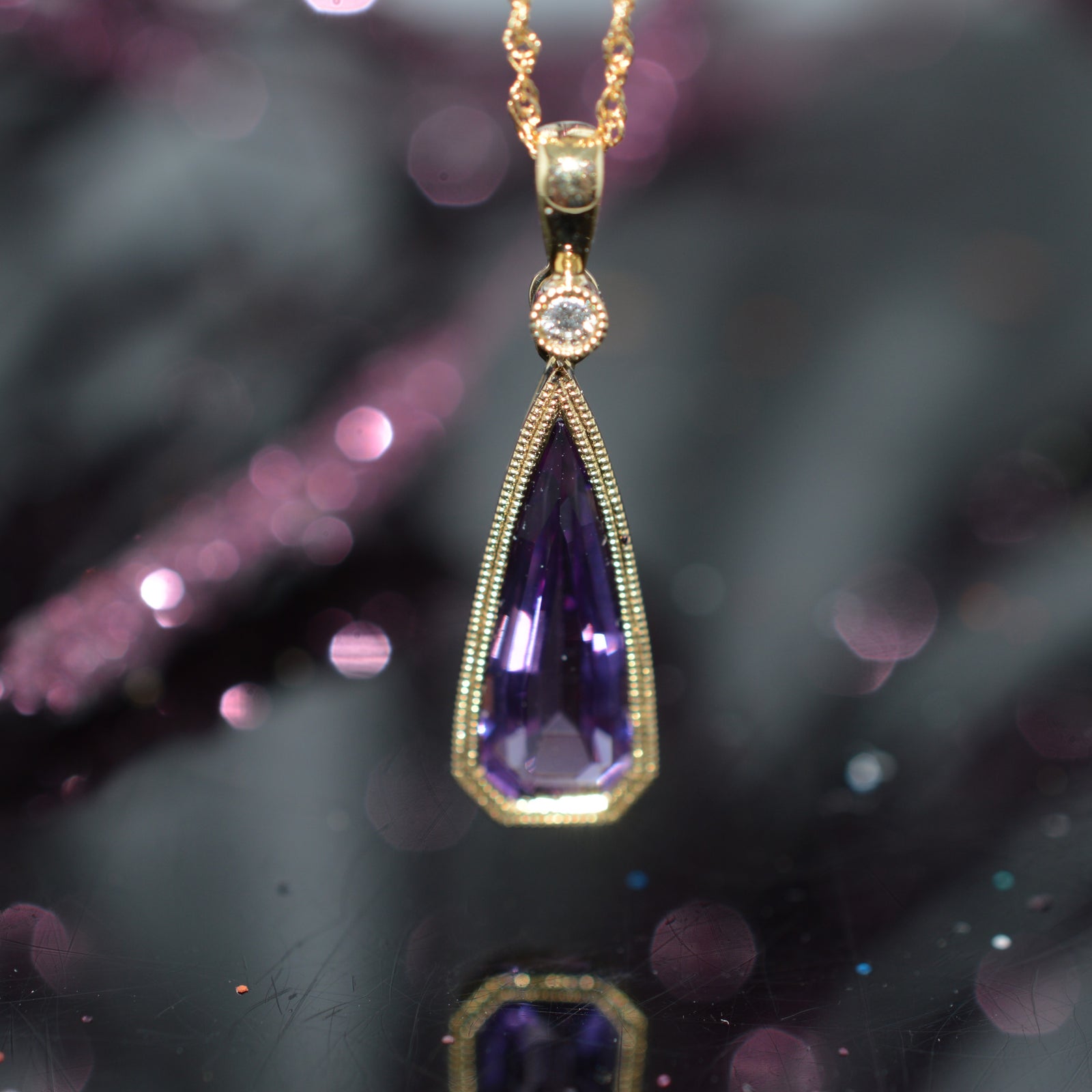 $1,680.00 USD14K Yellow Gold Bullet Cut Amethyst & Diamond Pendant