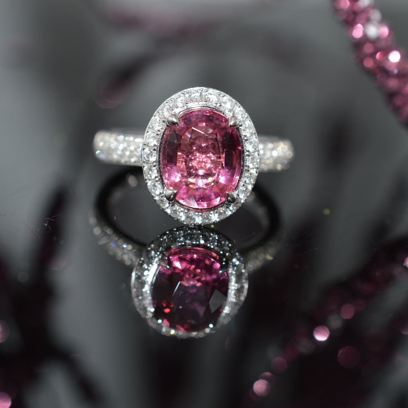 $3,500.00 USD18K White Gold Pink Tourmaline Ring With 1/2 Carat of Diamonds