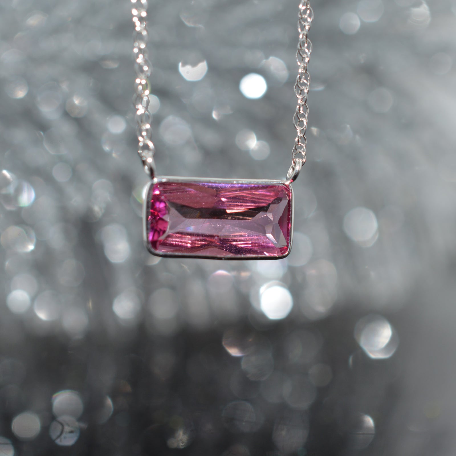 $875.00 USD14K White Gold Sideways Set Pink Tourmaline Necklace