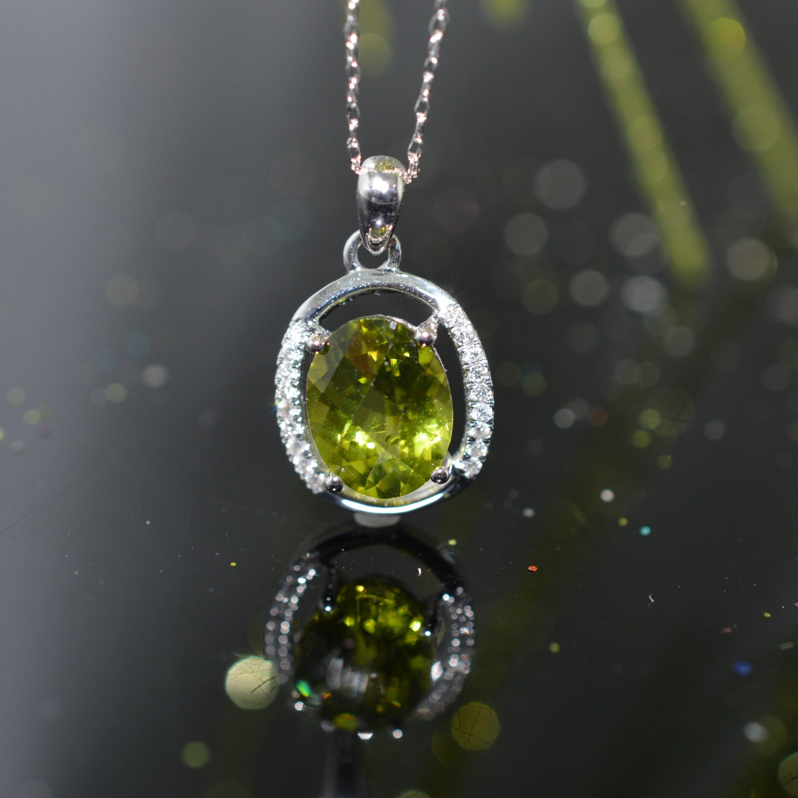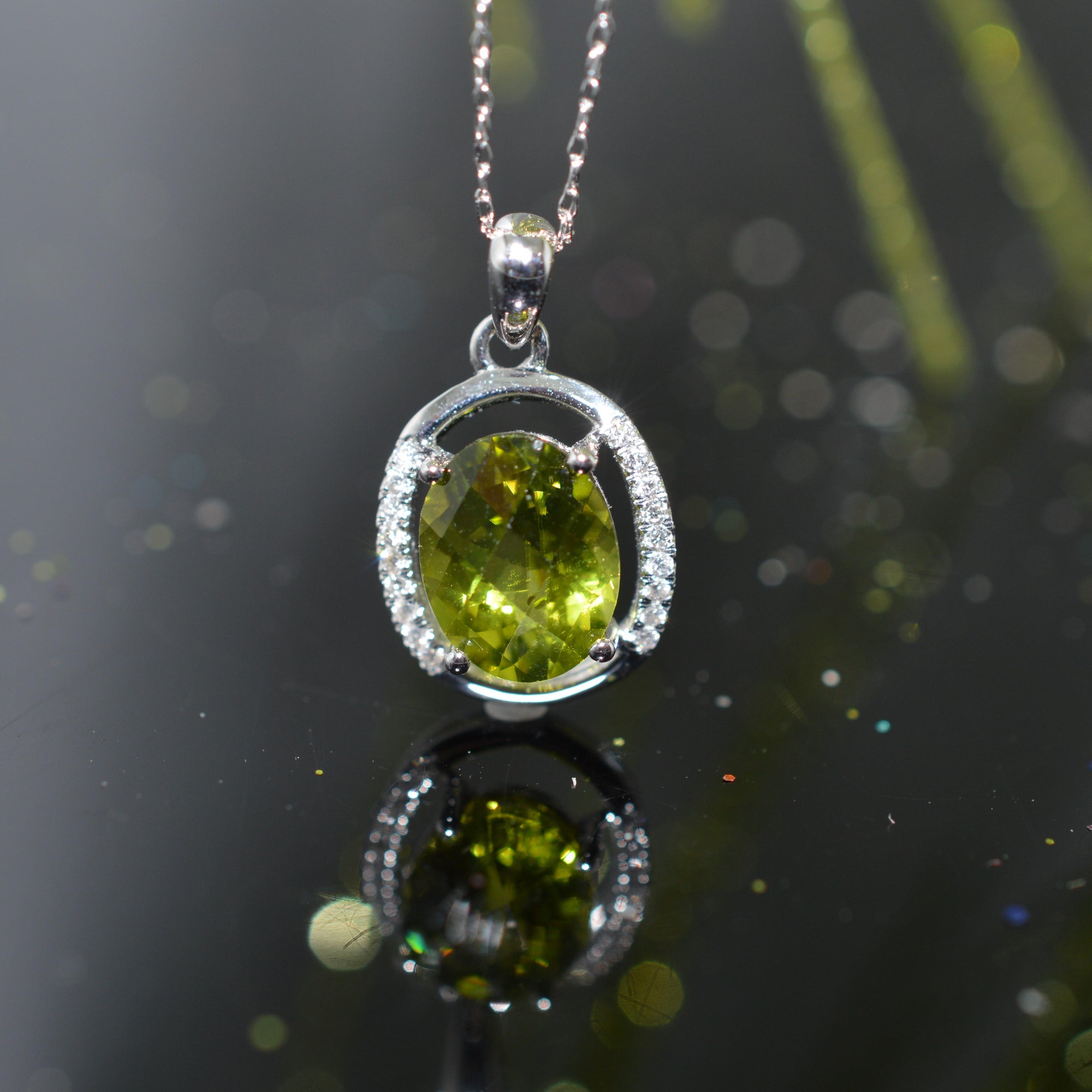 $850.00 USD14K White Gold Diamond & Peridot Pendant With Chain
