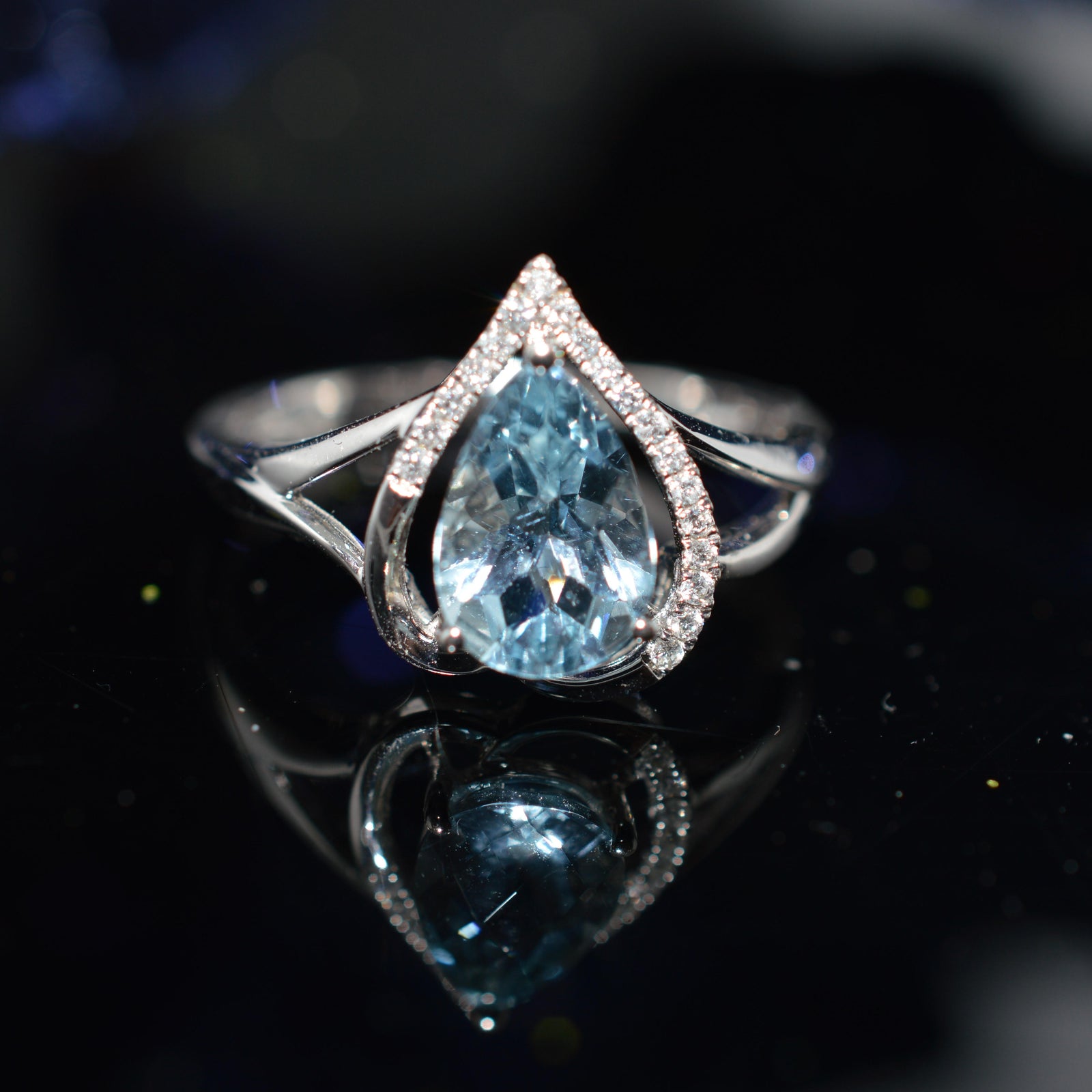 14K White Gold Pear Cut Aquamarine And Diamond Ring