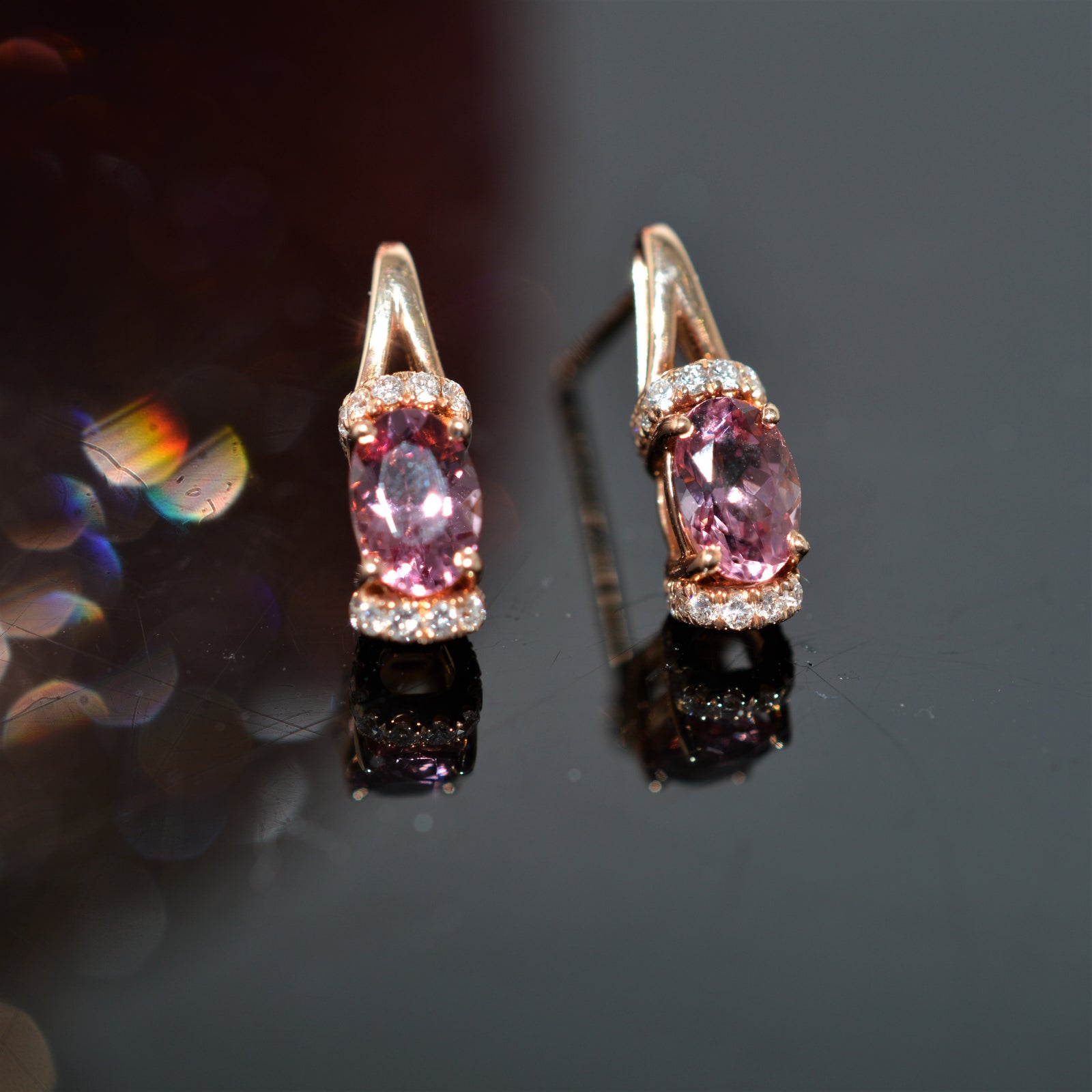 $1,450.00 USD14K Rose Gold 1.14 Carat TW Oval Lotus Garnet And Diamond Earrings