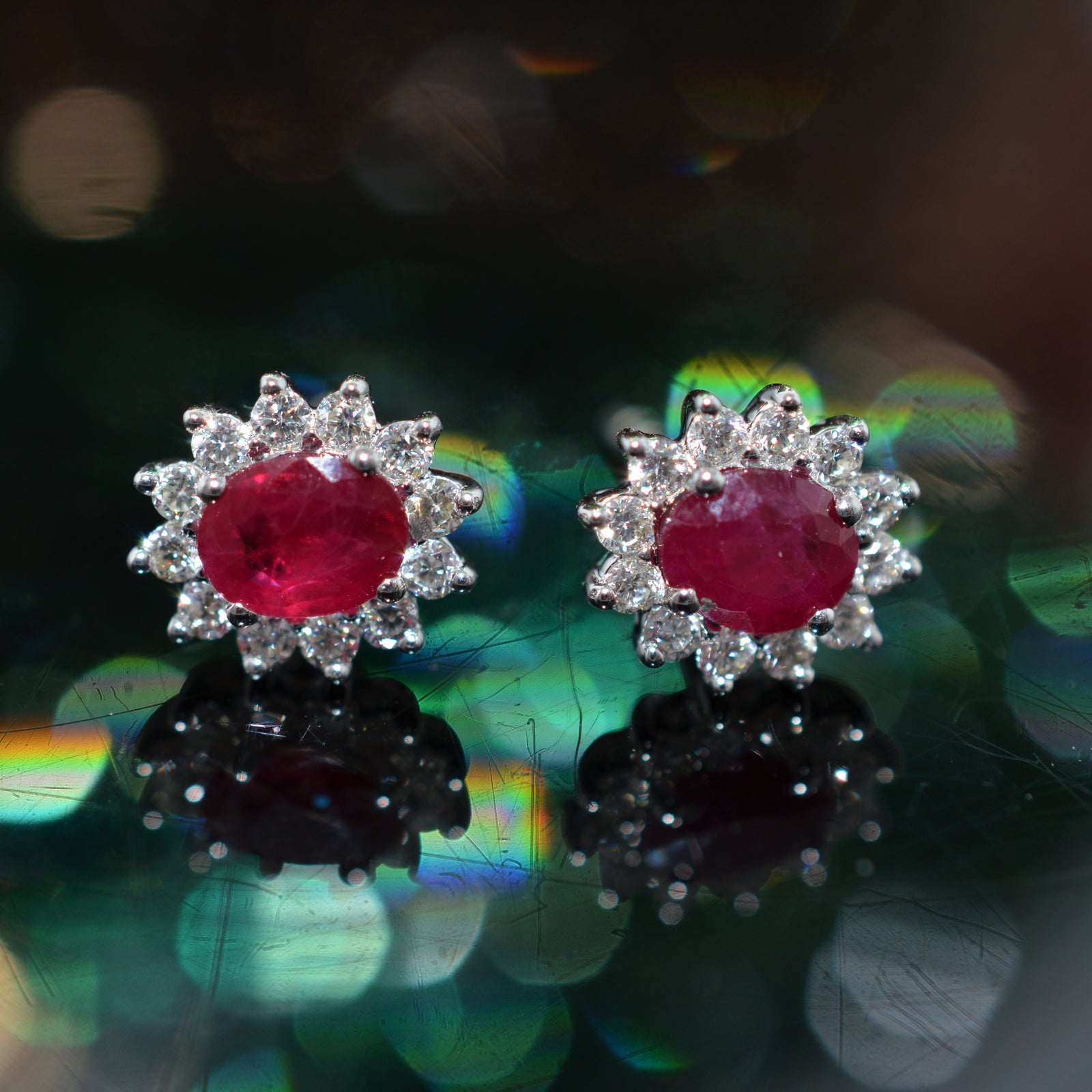 $895.00 USD14K White Gold .91 Carat TW Oval Genuine Ruby And Diamond Earrings