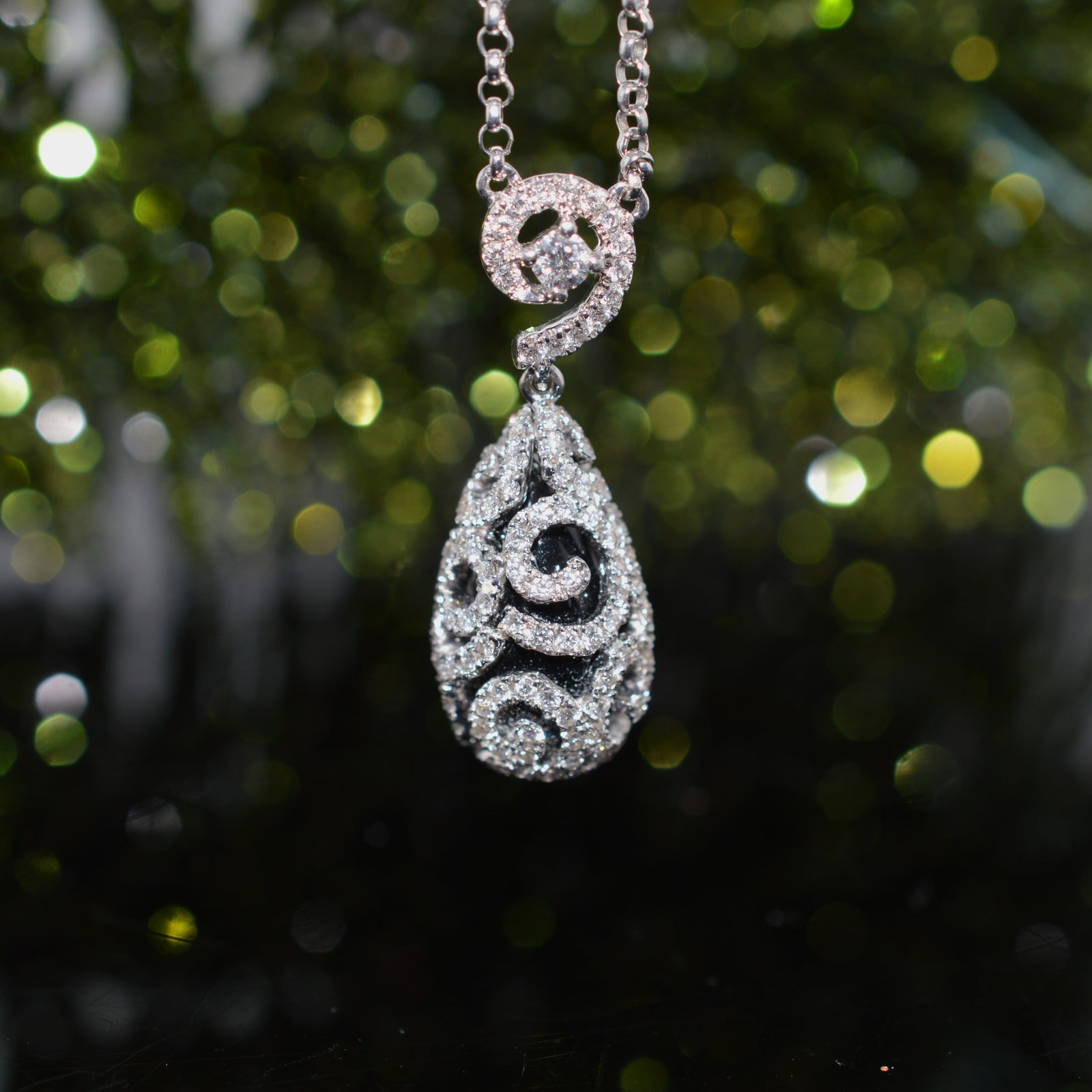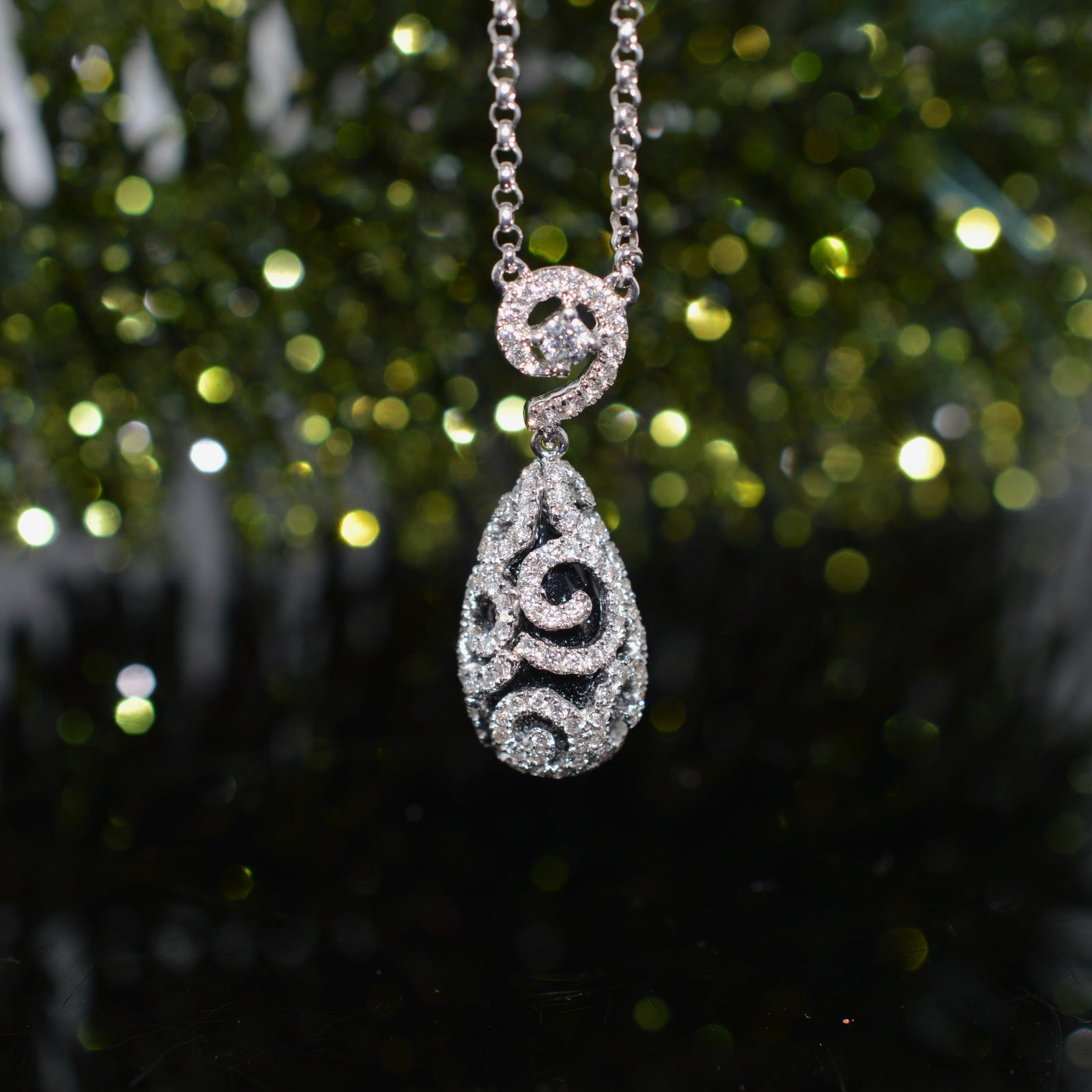 $3,500.00 USD18K White Gold Teardrop Black Onyx Pendant Encased In Diamonds