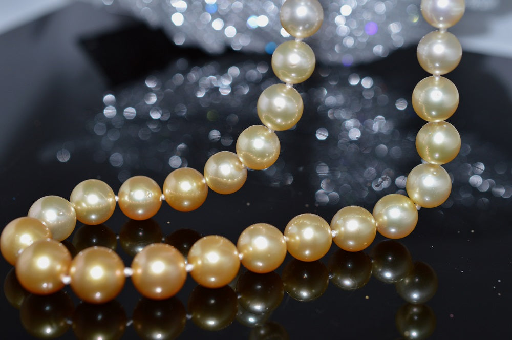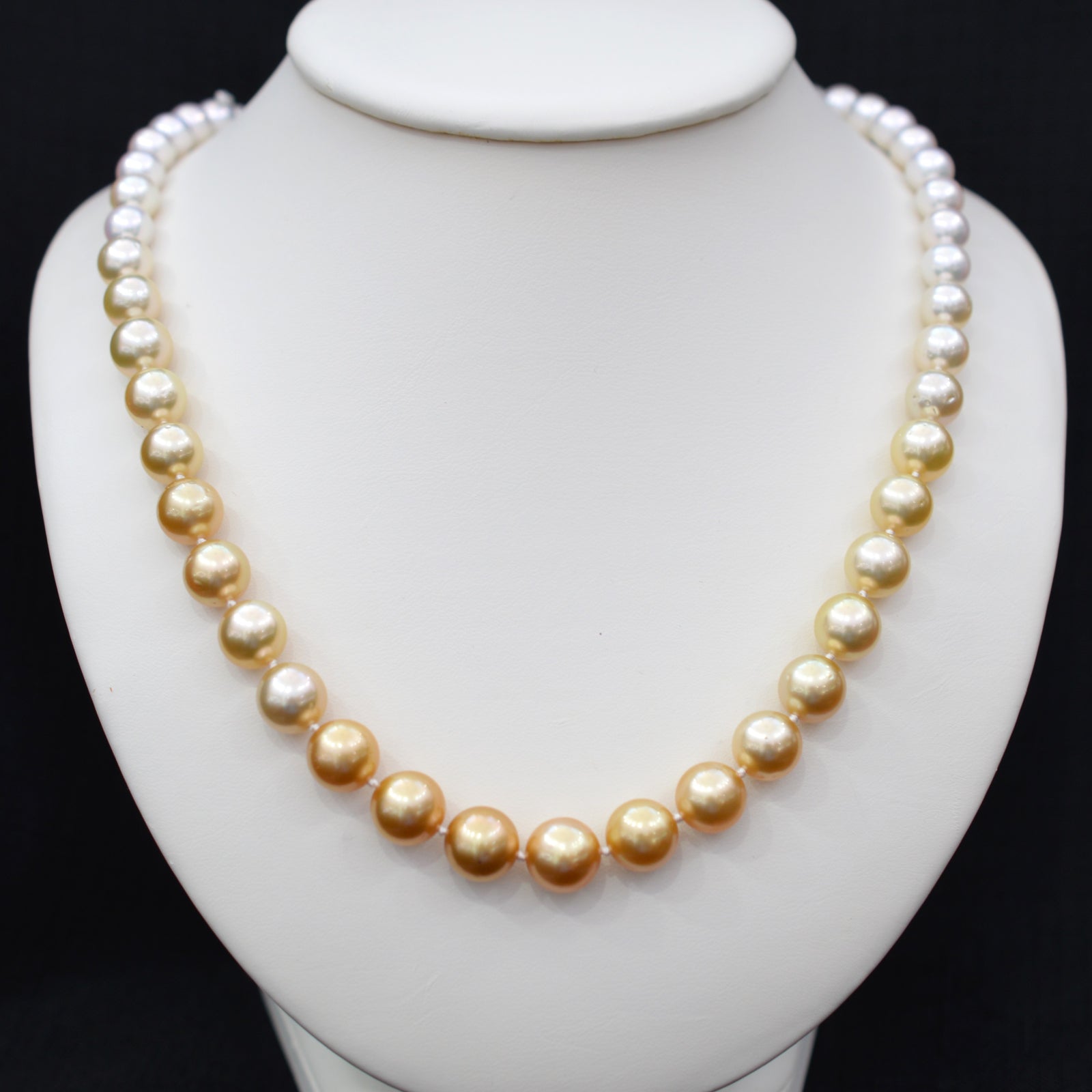 $1,950.00 USD14K Two Tone Gold 27 Inch Graduated Ombre' White Akoya & Golden South Sea Pearl Strand