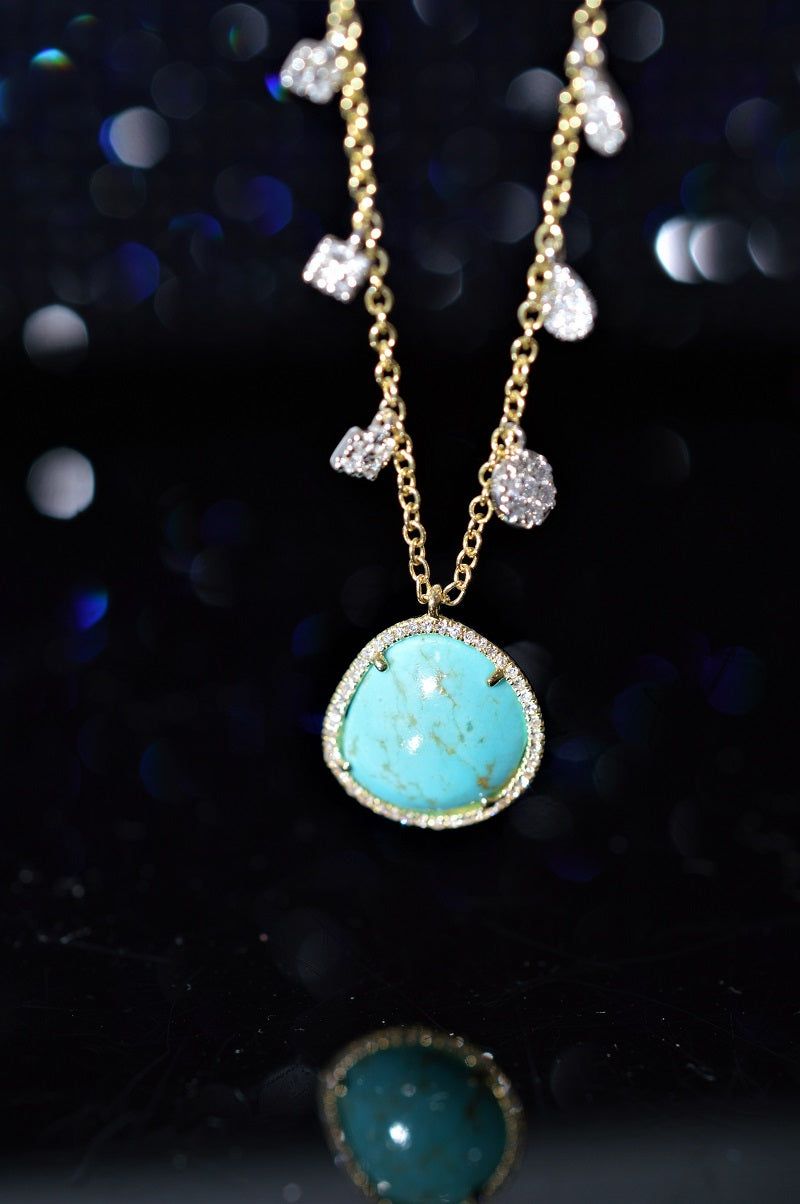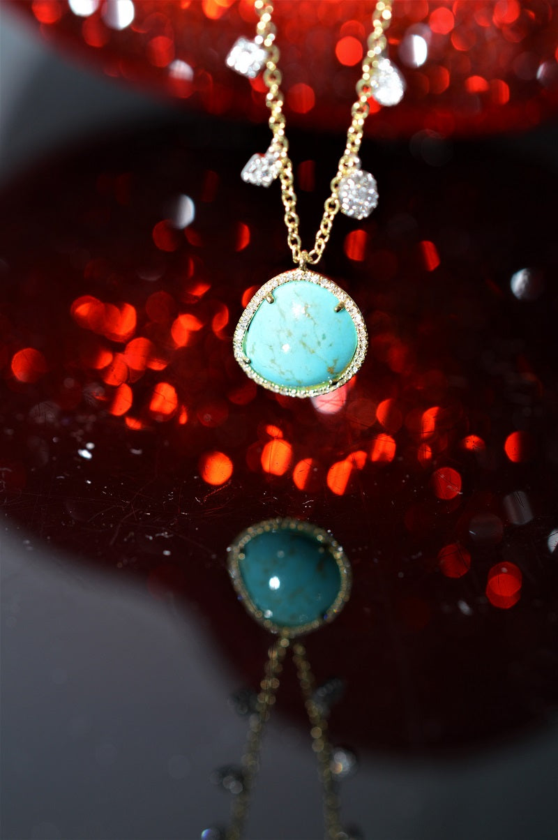 $550.00 USD14K Freeform Turquoise and Diamond Charm Adjustable Necklace