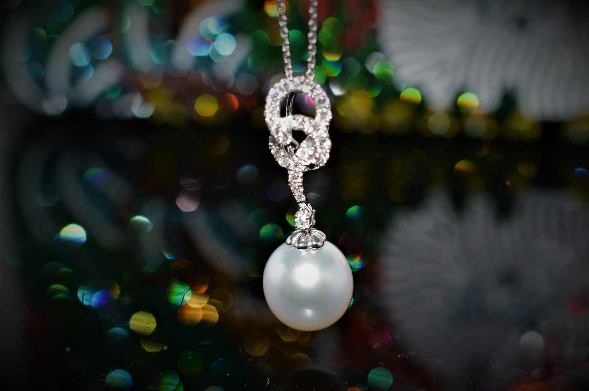 $1,100.00 USD14K White Gold South Sea Pearl And Diamond Pendant