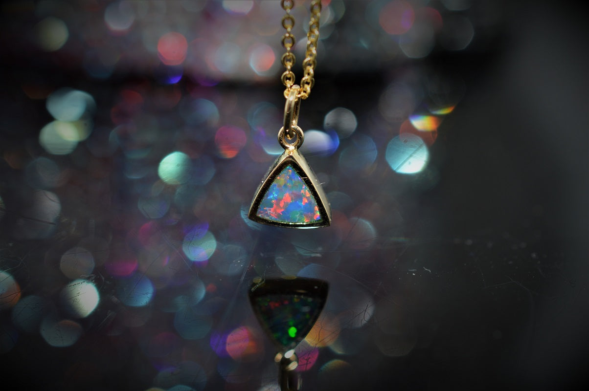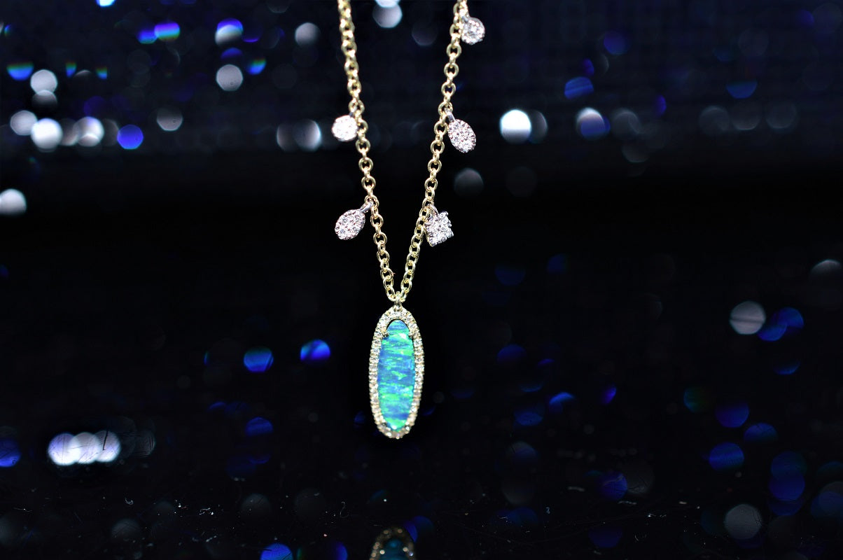 $1,475.00 USD14K Yellow Gold Adjustable Opal and Diamond Pendant