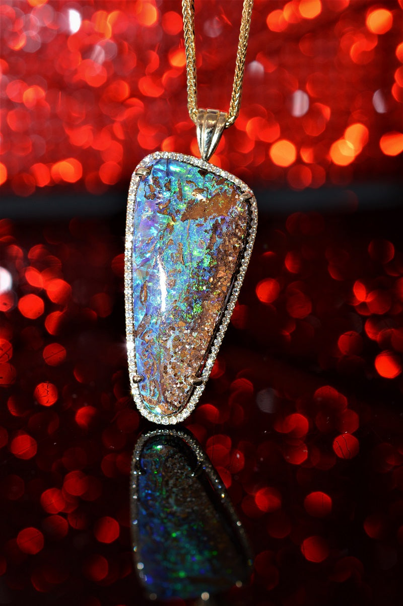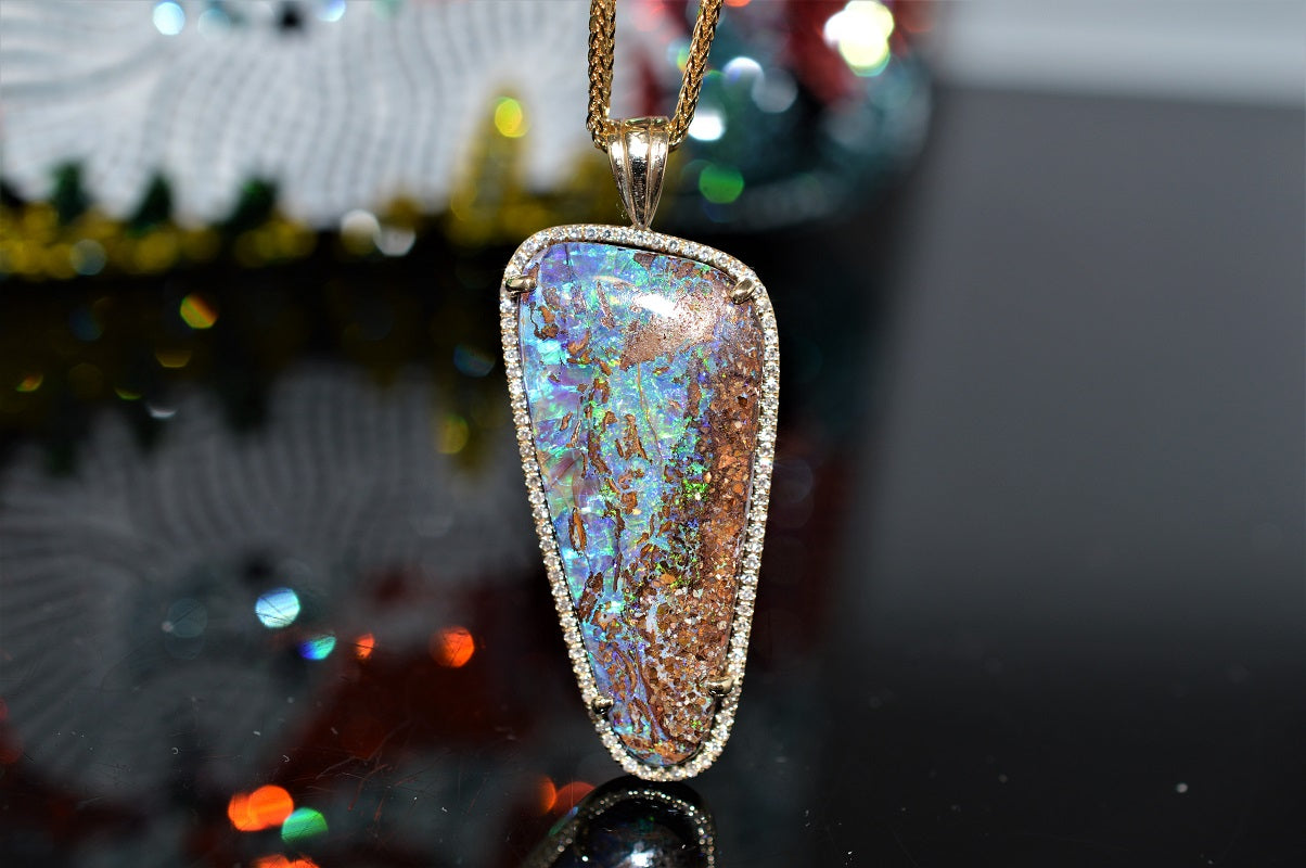 14K Freeform Boulder Opal and Diamond Pendant