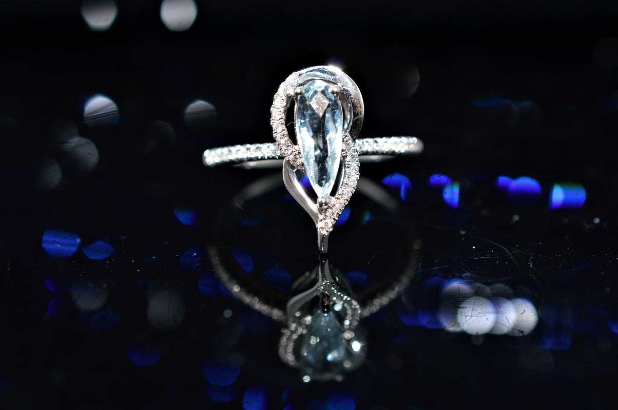 Sold Out14K White Gold Pear Shape Aquamarine And Diamond Ring