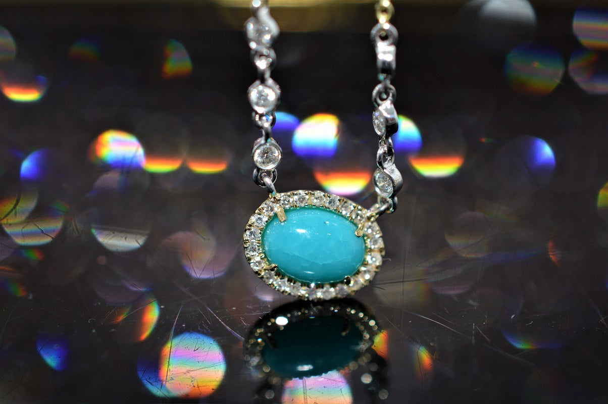 $1,650.00 USD14K Two Tone Turquoise and Diamond Adjustable Necklace