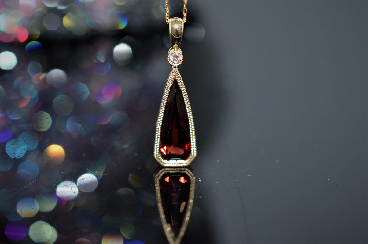 $2,600.00 USD14K Bullet Cut Garnet and Diamond Pendant