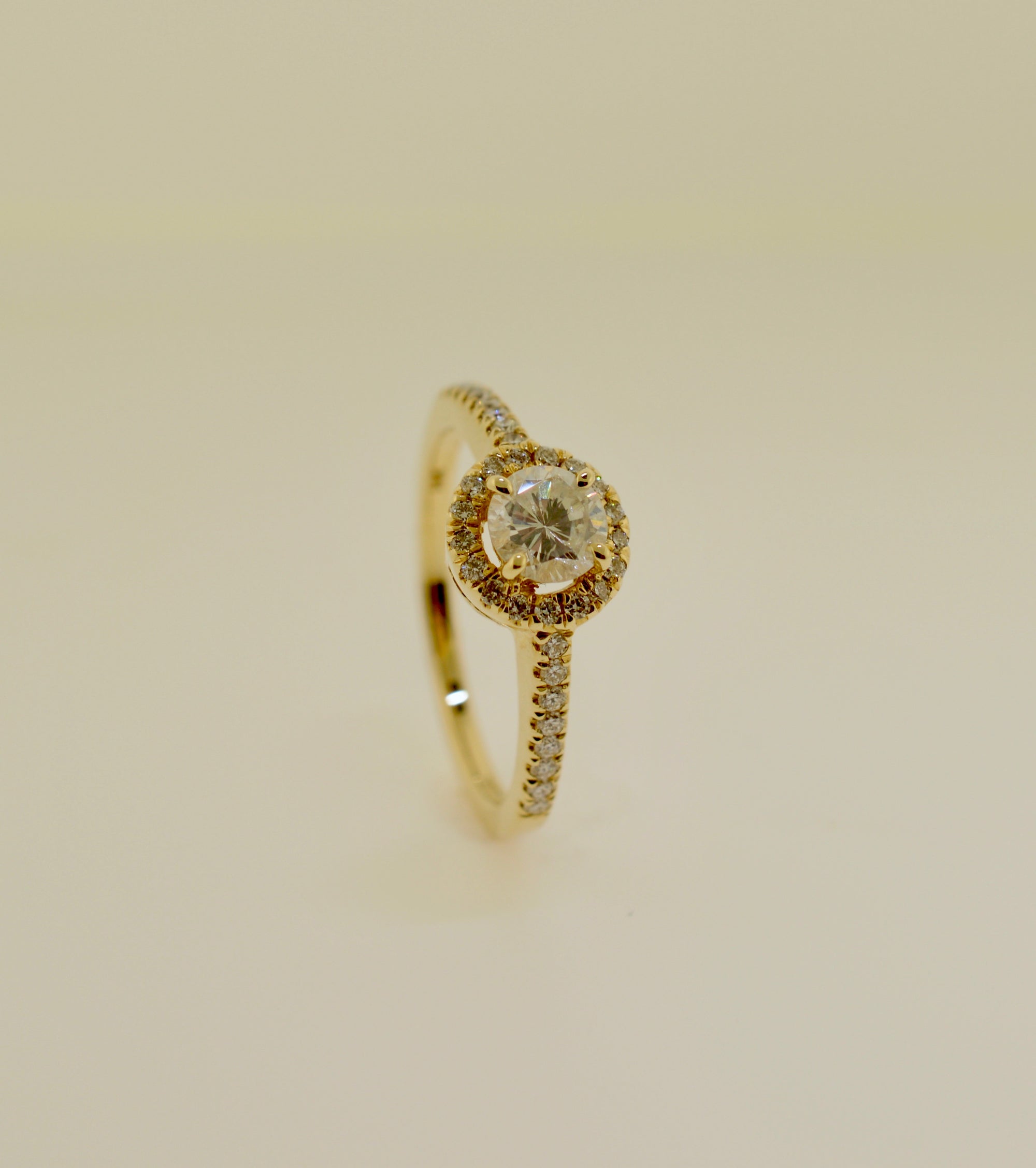$5,100.00 USD14K Yellow Gold Round Brilliant Cut Diamond Engagement Ring with Halo