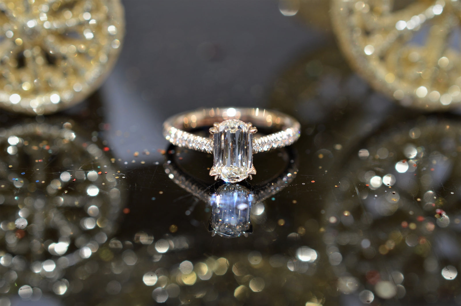 The L’Amour diamond is a design masterpiece to behold in its beauty and simplicity. Its distinctive design features 50 facets and two straight sides with subtle curvatures at the top and bottom that create a brilliant reflection unlike any other. Making a powerful and luxurious statement, L’Amour is available in a range of sizes and customized styles with sizing 40 to 50 percent larger than a comparable emerald-cut diamond. It is the ideal choice for today’s woman seeking a bold yet romantic piece of jewelry that’s both modern and classic. Plus, L’Amour offers the unique benefit of significant value for its size.